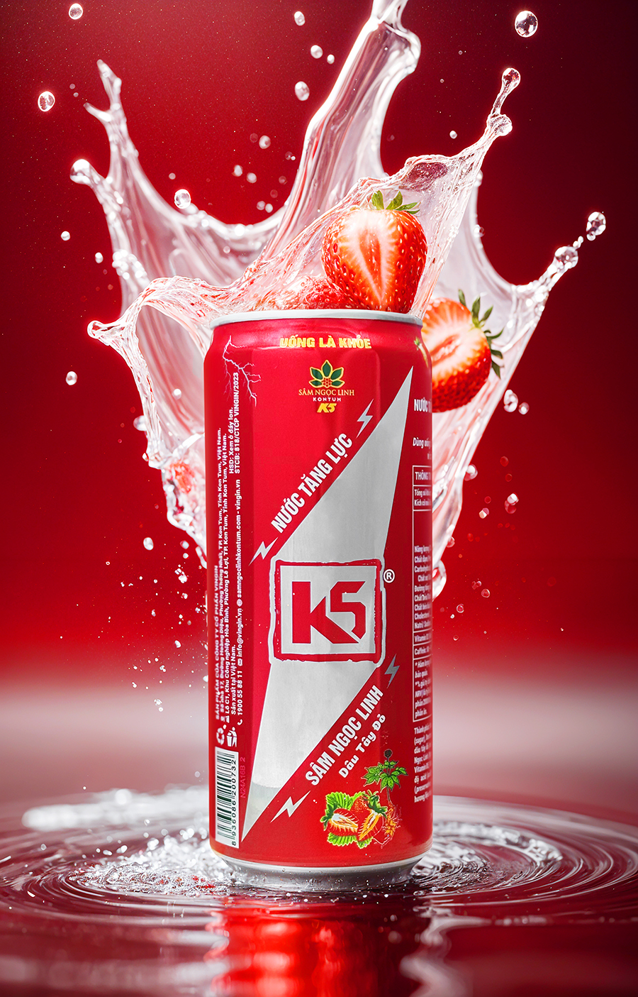 ✨Nước Tăng Lực K5 Sâm Ngọc Linh Thùng 24 Lon Vị Dâu Tây Đỏ (320ml/Lon)
