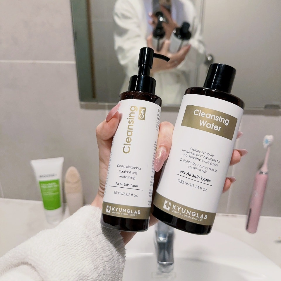 CÔNG DỤNG CHÍNH CỦA NƯỚC TẨY TRANG KYUNGLAB CLEANSING WATER   Sở hữu Nước Tẩy Trang KyungLab Cleansing Water giúp: » Nhẹ nhàng loại bỏ cặn bã của lớp trang điểm, bụi bẩn còn sót lại trên da giúp làm sạch sâu cho làn da mềm mại, khỏe mạnh. ĐỐI TƯỢNG SỬ DỤNG NƯỚC TẨY TRANG KYUNGLAB CLEANSING WATER Sản phẩm Nước Tẩy Trang Sạch Sâu Kyung Lab Cleansing Water phù hợp: Mọi loại da, rất thích hợp từ loại da thường cho đến da nhạy cảm. » Những ai có nhu cầu muốn tẩy đi lớp cặn trang điểm một cách sạch sâu   THÀNH PHẦN CHÍNH CỦA NƯỚC TẨY TRANG KYUNGLAB CLEANSING WATER Được nghiên cứu và cho ra đời với các thành phần tự nhiên, lành tính như: » HA đa phân tử » Trà xanh Hadong » Chiết xuất rau sam » Chiết xuất hoa trà Nhật Bản » Bơ hạt mỡ lên men     CÁCH SỬ DỤNG NƯỚC TẨY TRANG KYUNGLAB CLEANSING WATER   Cách dùng: Bước 1: Làm ướt bông tẩy trang rồi nhẹ nhàng chuyển động xoay tròn đều khắp làn da, bắt đầu từ 2 bên má – trán – mũi – cằm. Bước 2: Làm sạch hoàn toàn cả khuôn mặt, lặp lại các bước trên cho tới khi bạn không còn nhìn thấy cặn trang điểm trên bông tẩy trang. Lưu ý: Nên vặt chặt đầu sản phẩm Cleansing Water KyungLab lại sau khi sử dụng xong. Lời khuyên: Nên dùng kết hợp với sản phẩm Sữa Rửa Mặt KyungLab Cleansing Gel để đạt hiệu quả tối ưu.   LƯU Ý KHI SỬ DỤNG NƯỚC TẨY TRANG SẠCH SÂU KYUNGLAB » Bảo quản nơi khô ráo, tránh ánh nắng trực tiếp với mặt trời