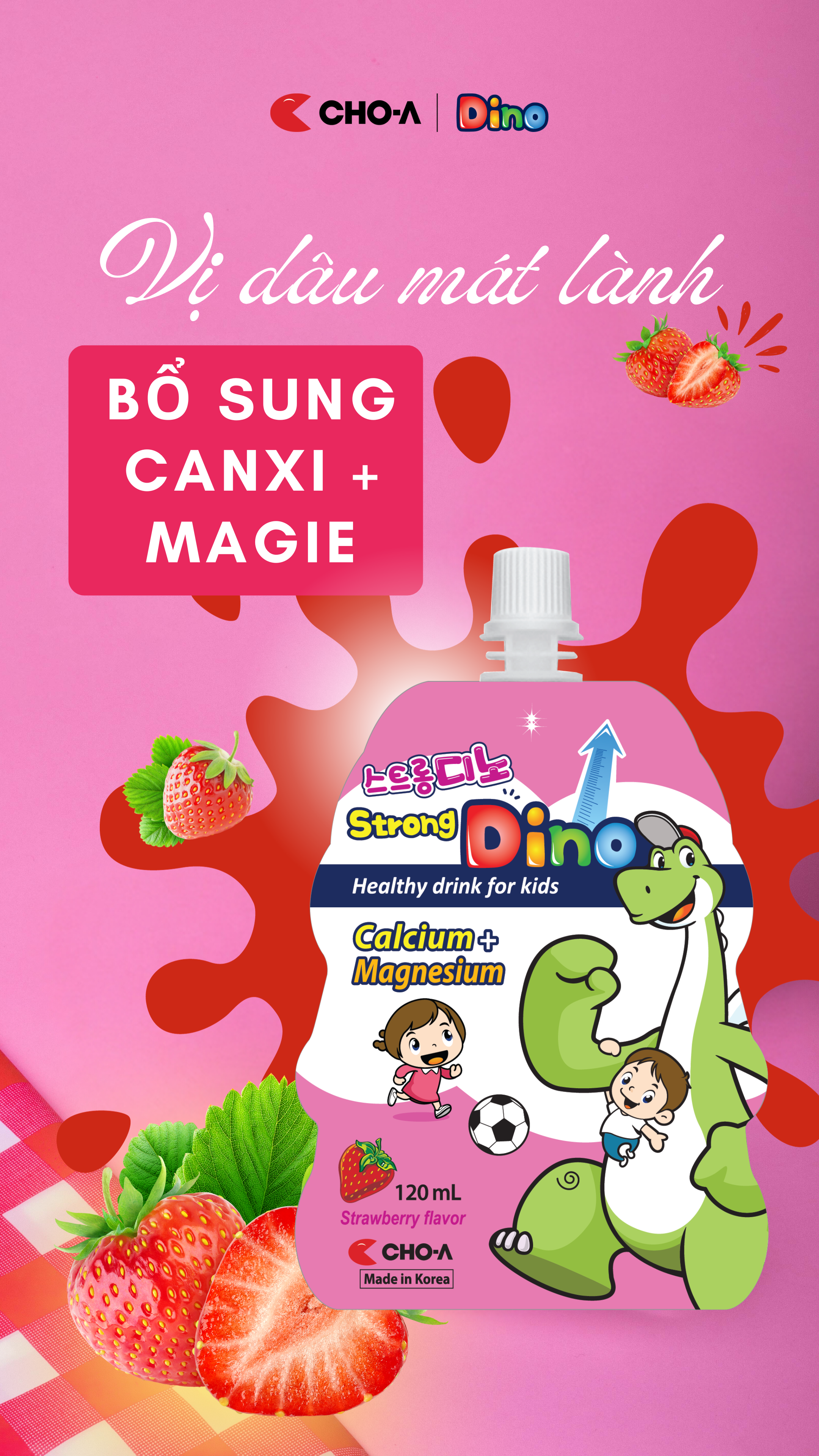 Mua tại TiktokNước Uống Dinh Dưỡng Vị Dâu Dành Cho Trẻ Em Strong Dino (10 Gói x 120ml) Nước uống dinh dưỡng Dino là sự lựa chọn hoàn hảo dành cho trẻ em trên 3 tuổi, là giải pháp tuyệt vời để hạn chế trẻ sử dụng các loại nước có gas. Sản phẩm được sản xuất bởi dây chuyền công nghệ hiện đại đạt chuẩn HACCP và GMP, được đảm bảo chất lượng dưới sự kiểm tra nghiêm ngặt của công ty CHO-A PHARM Hàn Quốc. Công Dụng: