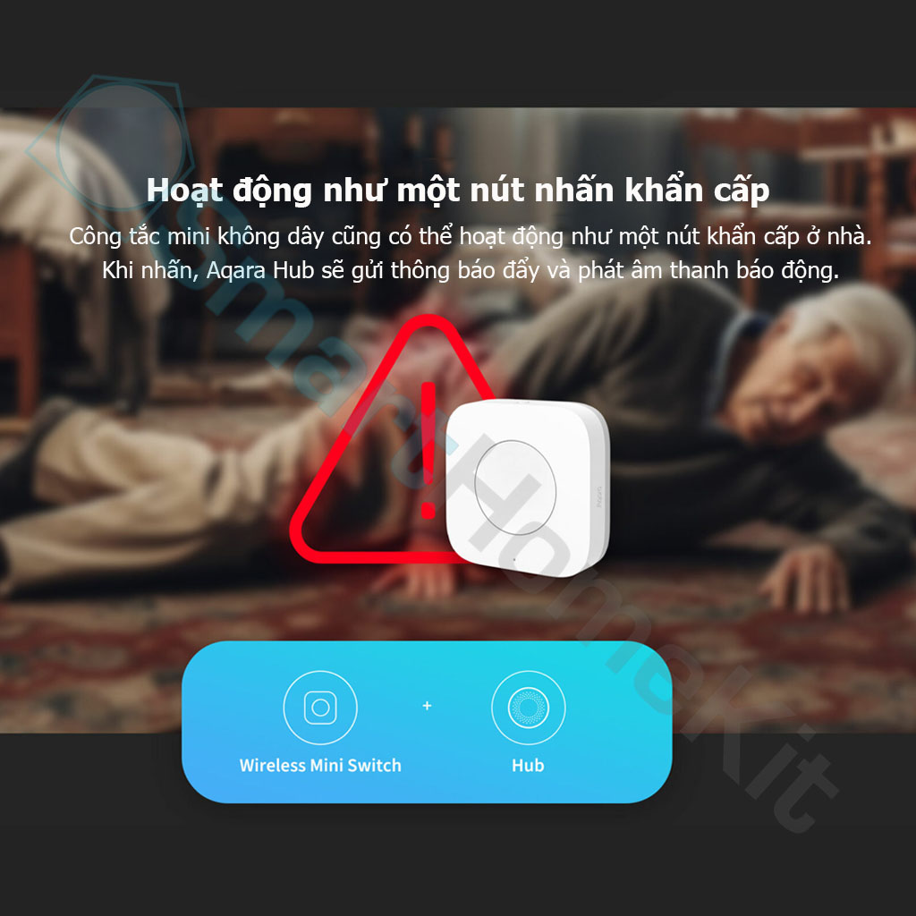 • Hoạt động như một nút nhấn khẩn cấp: Công tắc mini không dây cũng có thể hoạt động như một nút khẩn cấp ở nhà. Khi nhấn, Aqara Hub sẽ gửi thông báo đẩy và phát âm thanh báo động.