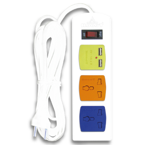 ✨Ổ Cắm Điện Nối Dài Robot 2 Ổ 3 Chấu (Có Nắp Che) Và Cổng Sạc USB - Hàng Chính Hãng