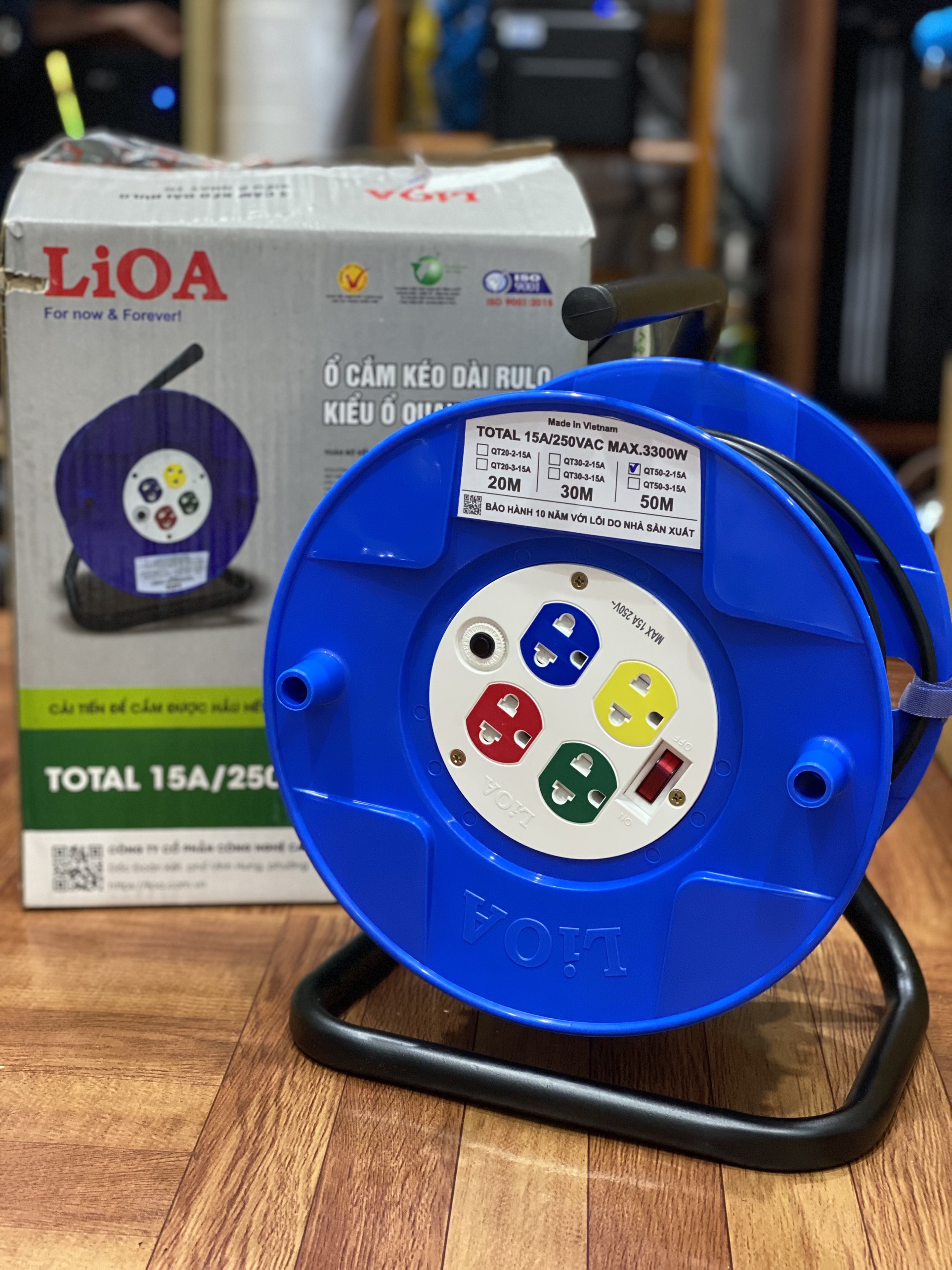 Mua tại TiktokMã sản phẩm : QT50-2-15 A Thương hiệu : Lioa NHẬT LINH Xuất xứ : Việt Nam Mô tả : Có bảo vệ quá tải bằng CB, ổ đa năng có nắp che an toàn. Là loại ổ cắm phổ thông Chất lượng : Mới 100% chưa qua sử dụng Bảo hành : 12 tháng chính hãng Ổ cắm rulo lioa 50 mét được sản xuất theo tiêu chuẩn Châu Âu, Mỹ, Anh, bền chắc đảm bảo độ an toàn cao cho người sử dụng. Nhíp tiếp xúc được chế tạo từ vật liệu đồng đàn hồi nhập khẩu đảm bảo không lỏng lẻo nên tiếp xúc tốt, không đánh lửa, an toàn và có độ bền cao. Vỏ ổ cắm bằng nhựa bền chắc, cách điện an toàn. Dây dẫn dài, bọc nhựa dày, mềm dẻo linh hoạt, cách điện tốt, an toàn khi sử dụng .