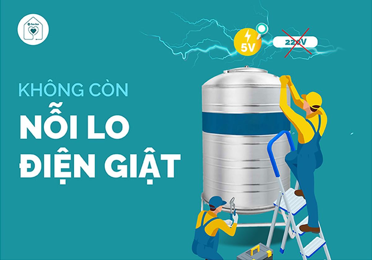 - Sử dụng nguồn cách ly điện áp thấp 5V đến phao điện tại các bể, an toàn cho người sử dụng.