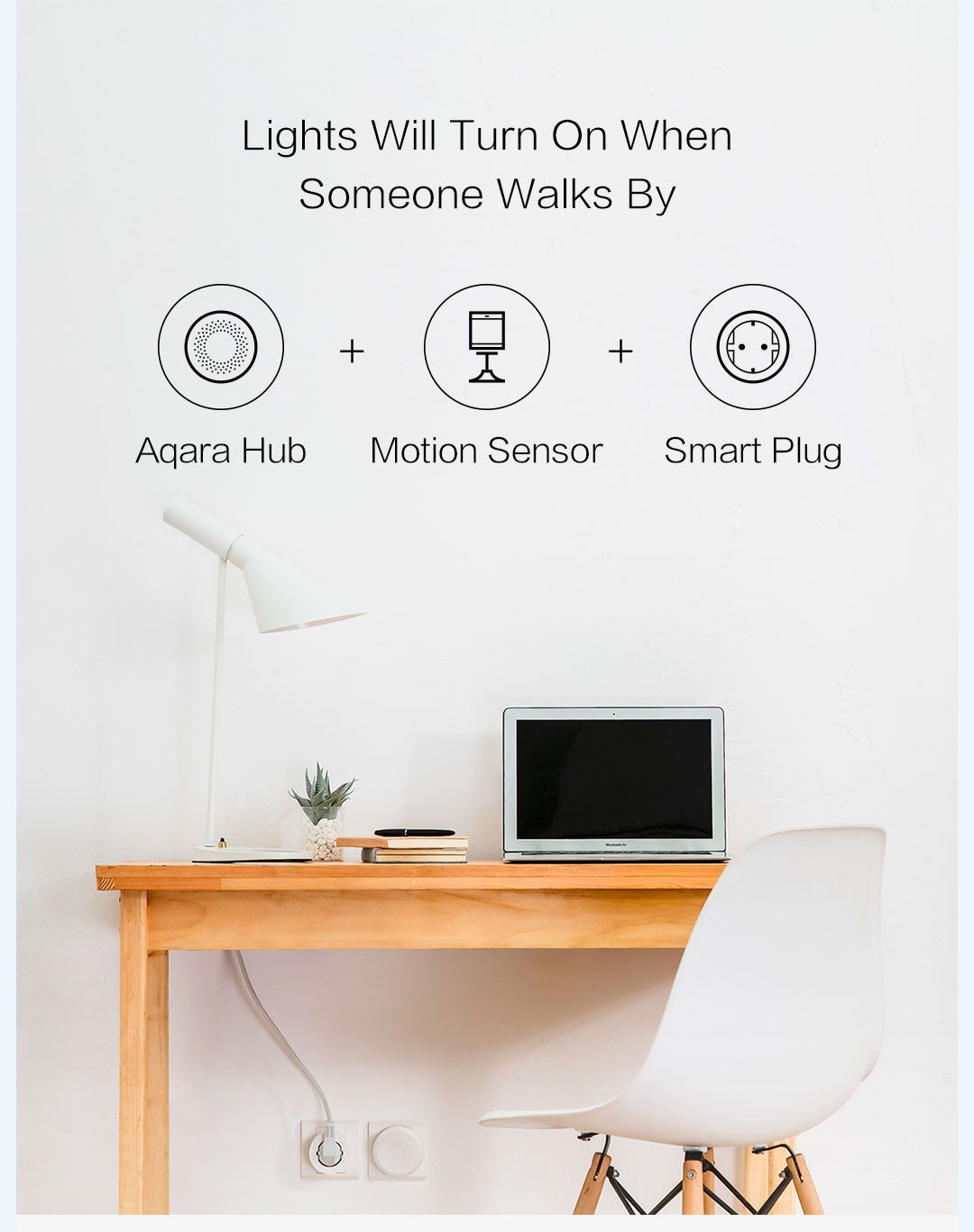 Điều khiển toàn căn nhà bằng điện thoại thật đơn giản Thay thế các ổ cắm thông thường nhà bạn với ổ cắm Aqara mà không cần phải sửa lại nhà. Chỉ cần cắm ổ Aqara vào các ổ cắm truyền thống sau đó cắm thiết bị điện trực tiếp là bạn có thể sử dụng. Kết nối ổ cắm chỉ với vài thao tác đơn giản mà bất cứ ai cũng có thể làm. Aqara Smart Plug sử dụng sóng Zigbee 3.0 do đó cần có một Aqara Hub Zigbee để sử dụng các chức năng thông minh.