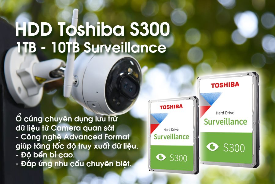 Giải pháp lưu trữ của Toshiba - Với hệ thống giám sát, không có gì tốt nhất là đủ. Toshiba 3.5 inch S300 HDD được chế tạo để đáp ứng những nhu cầu cao nhất. S300 có thể hỗ trợ lên đến 64 camera video giám sát với độ phân giải cao, đồng thời có dung lượng lên đến 6 TB (dòng S300, S300 pro 6-10TB), ổ cứng này đáp ứng được nhu cầu cần thiết. Mỗi chiếc S300 đều được chế tạo với các thành phần chất lượng cao nhất và đã vượt qua các bài kiểm tra nghiêm ngặt để đảm bảo độ tin cậy và hiệu suất 24 x 7.