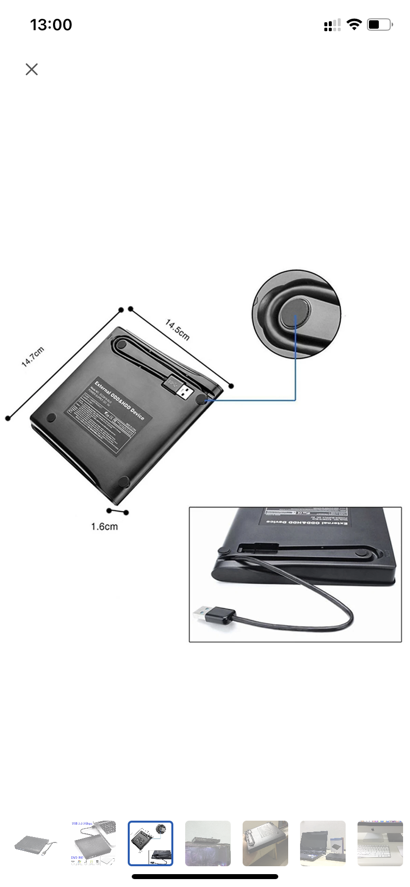 Tương thích với CD-R/RW, DVD ± R, DVD ± RW, DVD ± R DL, và DVD-RAM Giao diện USB 3.0 cho tốc độ truyền dữ liệu cao 8x DVD ± R đọc/ ghi, 24x CD-R/RW đọc/ ghi Nhỏ gọn và dễ dàng mang theo Dễ dàng Plug and play Yêu cầu: Máy tính để bàn hoặc máy tính laptop sử dụng cổng USB