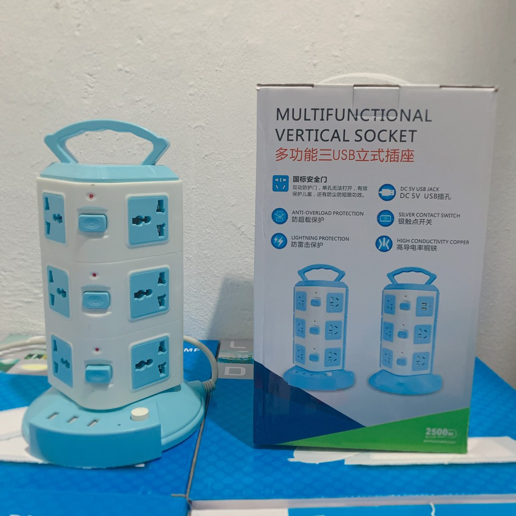- Ổ cắm điện 3 tầng có công tắc và có đèn led báo hiệu riêng cho từng tầng, . Có 12 lỗ cắm điện nhà và 3 cổng sạc USB 5V dùng sạc điện thoại, máy tính bảng,...