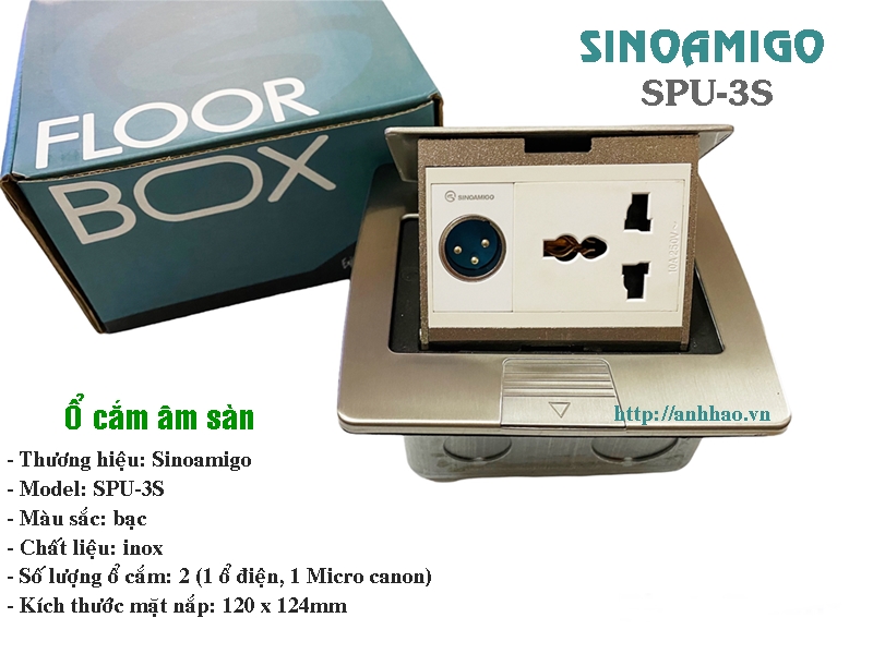 Ổ cắm HDMI âm sàn cao cấp Sinoamigo SPU-3S màu bạc được sản xuất theo tiêu chuẩn Châu Âu với mẫu mã đẹp, và sáng tạo trong thiết kế. Các modules được tích hợp bên trong hộp ổ cắm âm sàn như ổ mạng RJ45, ổ thoại RJ11, ổ điện đa năng, ổ Audio, USB, HDMIúp cho ngôi nhà của bạn trở nên hiên đại và sang trọng. Hộp ổ cắm điện âm sàn SPU-3S chuyên dùng lắp âm sàn cho siêu thị, văn phòng, nhà hàng, văn phòng, trường học, bệnh viện…