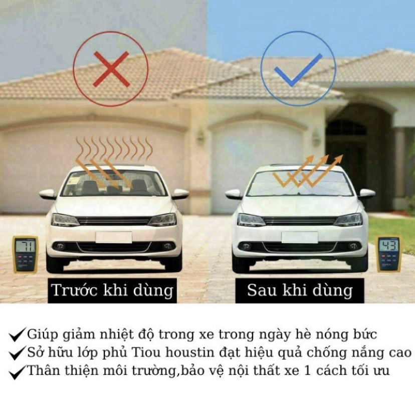 TIỆN DỤNG: KHÔNG CẦN RA NGOÀI NẮNG ĐỂ PHỦ BẠT CHO XE. THÔNG MINH: Ô THIẾT KẾ ĐÓNG MỞ NHANH, GỌN GÀNG KHÔNG TỐN DIỆN TÍCH VẢI CÁCH NHIỆT PHỦ BẠC TITAN NGĂN CHẶN 99%