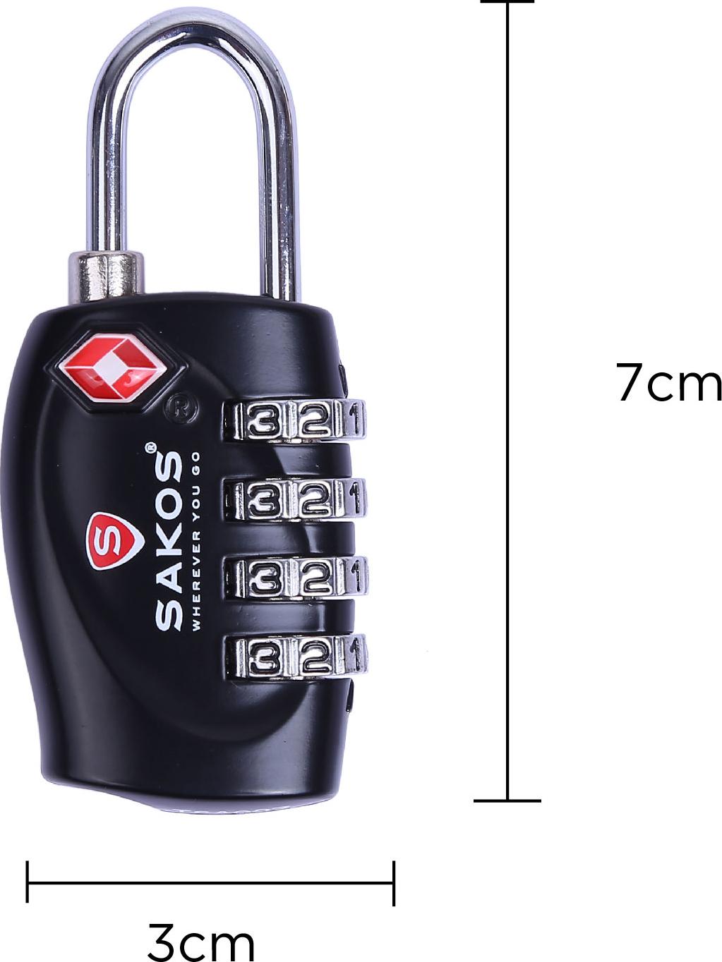 - Ổ khóa số TSA Sakos tích hợp khóa số tiện lợi theo tiêu chuẩn của Tổ chức an ninh Vận chuyển Hoa Kỳ.