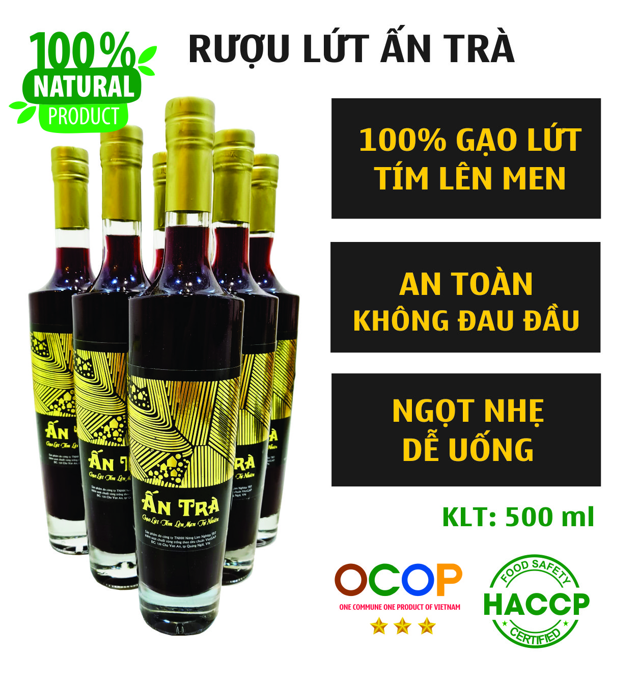 Mua tại Tiktok“Sau nhiều lần thử nghiệm, chúng tôi đã tìm ra được công thức tuyệt hảo lên men “Rượu lứt Ấn Trà”. Sử dụng 100% gạo lứt tím ngọt thơm được nấu chín, ủ với men rượu đặc biệt, kết hợp sự pha trộn hoàn hảo với rượu truyền thống đã tạo nên những giọt rượu màu tím đậm đà, độc đáo có hậu vị ngọt, chát lưu lại đến ngất ngây.