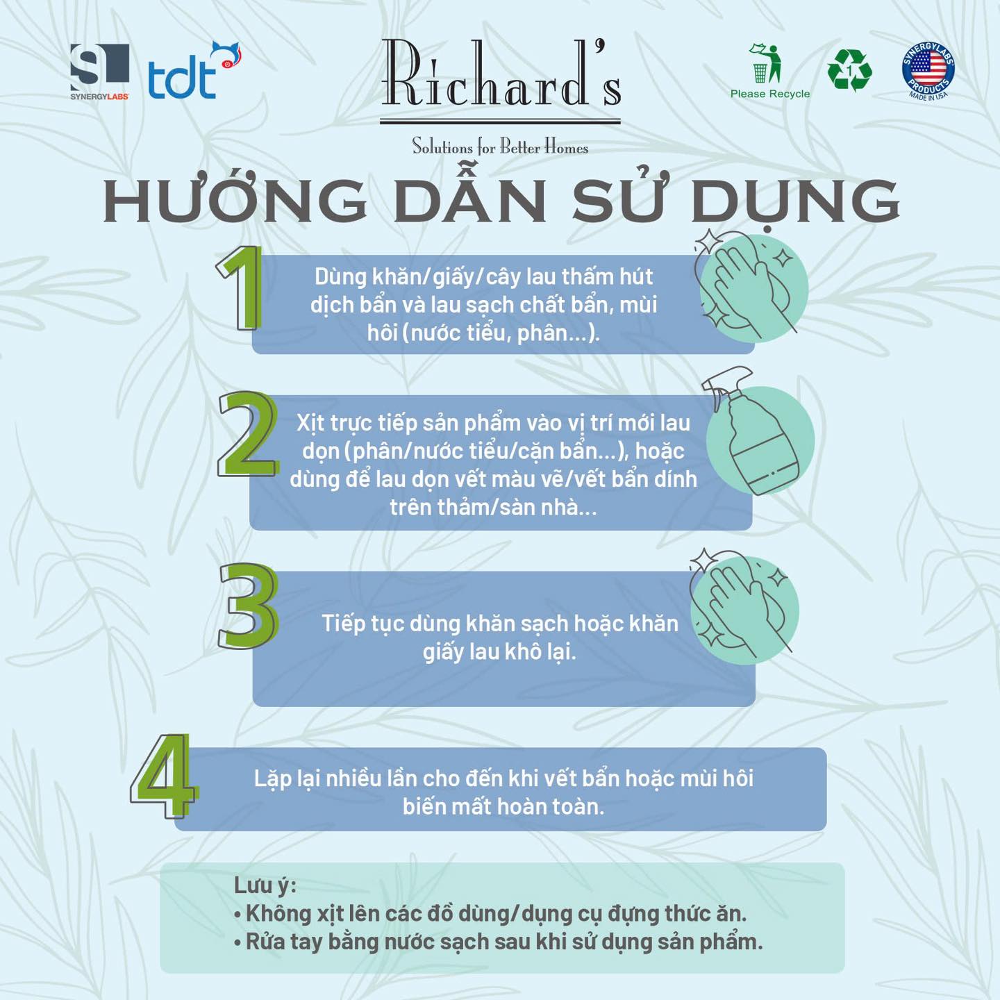 (ODOR SPRAY) XỊT KHỬ MÙI VÀ TẨY BẨN - RICHARD’S STAIN & ODOR ELIMINATORS Richard’s Stain & Odor Eliminator có công thức chứa các loại enzyme sinh học với hoạt tính kép, giúp khử