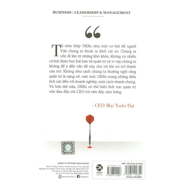 nghiệp Việt Nam – Mr. Mai Xuân Đạt. - Đọc “OKRs, Hiểu đúng, làm đúng” sẽ giúp “hiểu đúng” về phương pháp quản trị OKRs, và tiến đến “làm