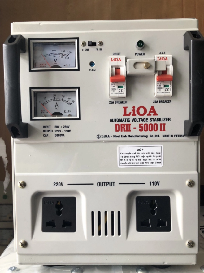 Ở điều kiện tiêu chuẩn điện hình Sin tần số 49Hz đến 62Hz, tất cả các máy ổn áp LiOA xuất xưởng đã được kiểm tra cân chỉnh để đảm bảo khi điện áp đầu vào nằm trong giới hạn của máy. Tuy nhiên, có những trường hợp lưới điện không đạt hình Sin chuẩn và trong giới hạn tần số như trên thì điện áp ra sẽ bị sai lệch, ổn áp LiOA thế hệ mới có một triết áp điều chỉnh điện áp ra có ghi chữ V-ADJ để quý khách có thể tự vi chỉnh được điện áp ra.