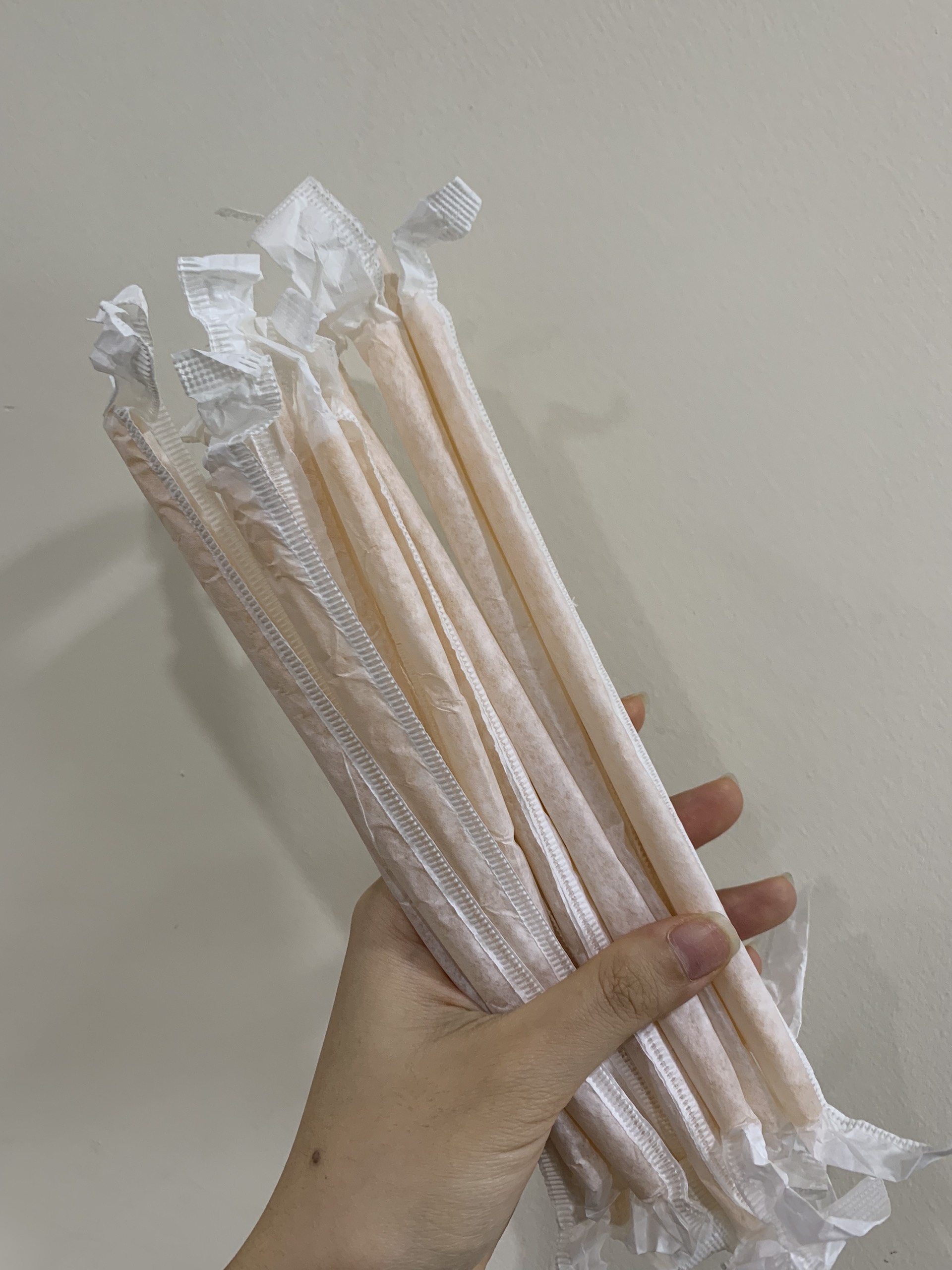 Ống hút ống hút gạo ống hút ngũ cốc có màng bọc Ống hút được dùng thay thế ống hút nhựa Được sản xuất từ tinh bột gạo, bột sắn, màu sắc từ rau củ
