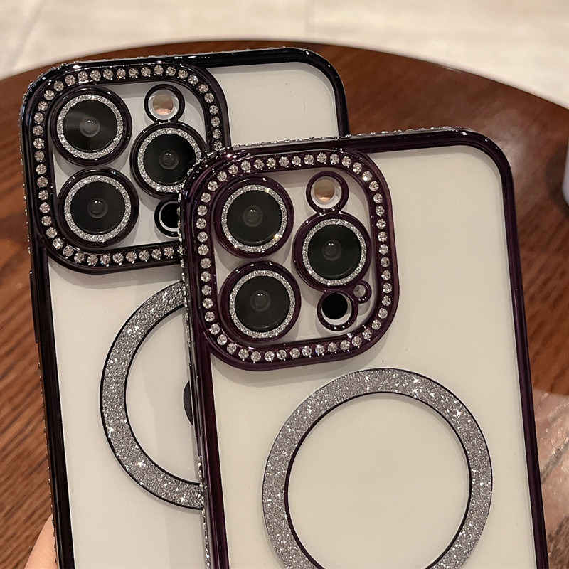 ✨Ốp lưng cho iphone 15 pro max sạc từ tính đính đá vòng kim tuyến rất đẹp - hàng chính hãng