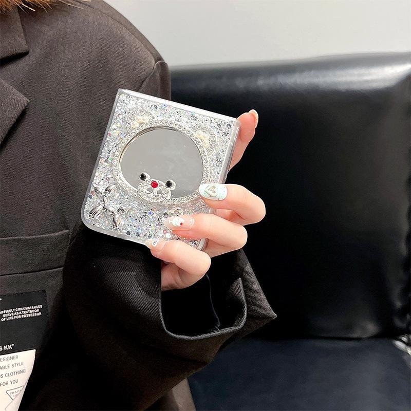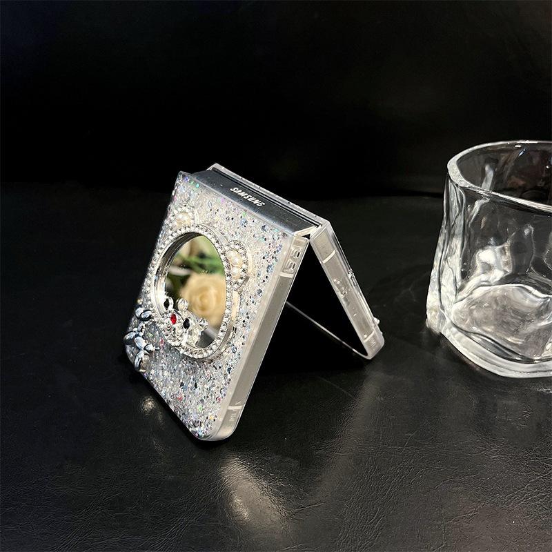 Ốp Lưng Nhựa Cứng Đính Gương Soi Trang Điểm Cho Samsung Z FLIP 6 / Z FLIP 5 - Chất liệu : viền nhựa cứng mờ - Mặt lưng ép kim tuyến bên trong chắc