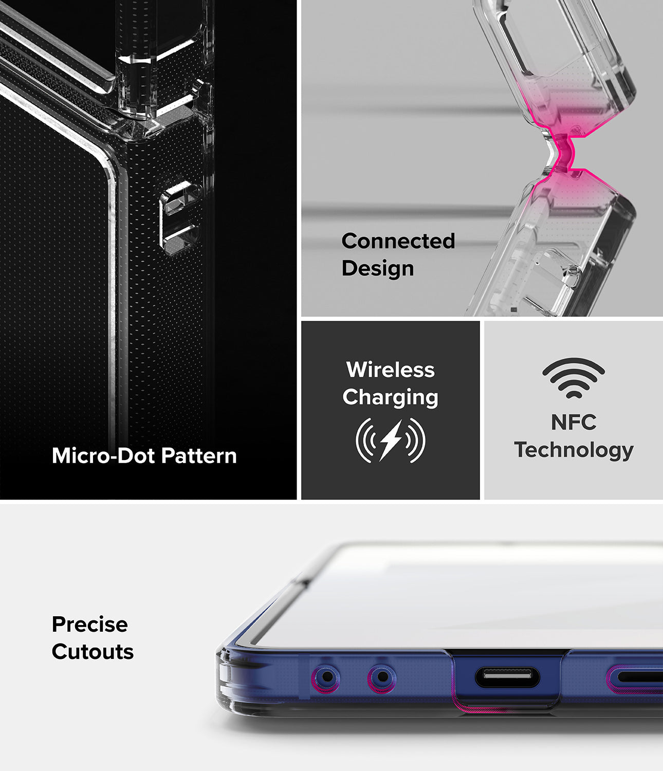 Ốp lưng Samsung Galaxy Z Flip 6 RINGKE Fusion có thiết kế trong suốt và kết nối phần trên và phần dưới ốp lưng, giúp giữ nguyên vị trí trong khi mở và đóng thiết bị.