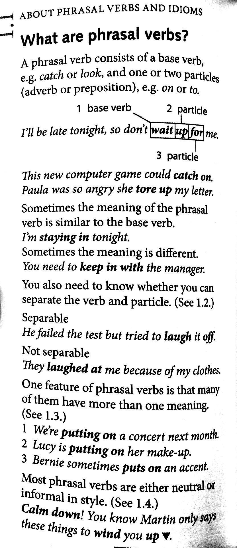 Learn phrasal verbs and idioms in context and know how and when to use them.Increase your knowledge and understanding of phrasal verbs and idioms with this compact, easy-to-use book. It teaches over 1,500 phrasal verbs and idioms, and is ideal for preparing for exams such as IELTS and Cambridge English: Proficiency and Advanced.