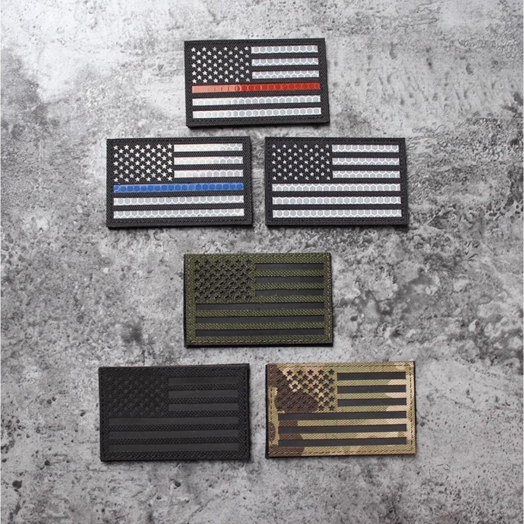 Patch phản quang cờ Mỹ dán quần áo_ba lô_túi xách Được khắc CNC cực kỳ nét và tinh xảo Có khả năng phản quang khi chiếu đèn ban đêm Kích thước : 5 x 8cm