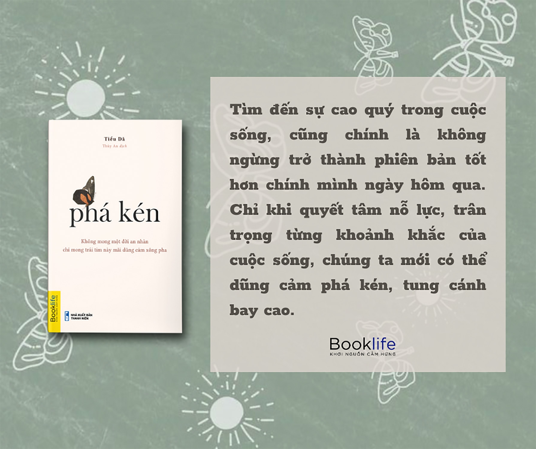 2.4 Tìm đến sự cao quý trong cuộc sống, cũng chính là không ngừng trở thành phiên bản tốt hơn chính mình ngày hôm qua. Chỉ khi quyết tâm nỗ lực, trân trọng từng khoảnh khắc của cuộc sống, chúng ta mới có thể dũng cảm phá kén, tung cánh bay cao.