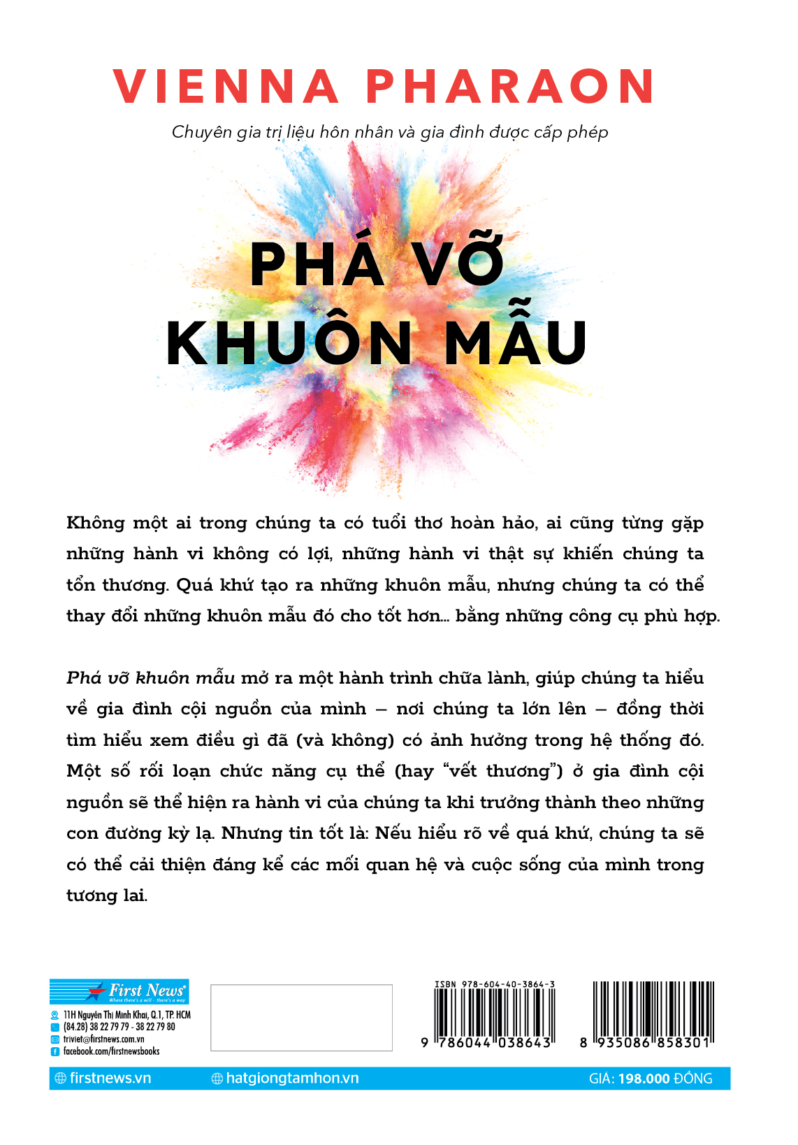 Trong cuốn sách “Phá vỡ khuôn mẫu” (tựa gốc: The Origins of You), tác giả Vienna Pharaon, nhà trị liệu hôn nhân và gia đình sẽ từng bước dẫn dắt bạn tìm hiểu về vết thương cội nguồn của mình. Tác giả cũng sẽ giúp bạn đi tìm nguyên nhân vì sao những câu chuyện, những mối quan hệ trong gia đình vẫn tiếp tục ảnh hưởng đến cuộc sống hiện tại và tương lai của bạn, của con cái bạn; và cách áp dụng phương pháp Chữa lành tận gốc để bạn thoát ra khỏi khuôn mẫu này.