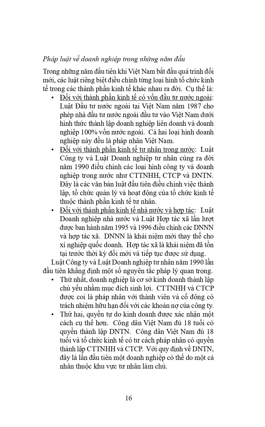 • Phần I (từ Chương 1 đến Chương 9) phân tích các vấn đề pháp lý chung và áp dụng cho mọi loại hình doanh nghiệp.