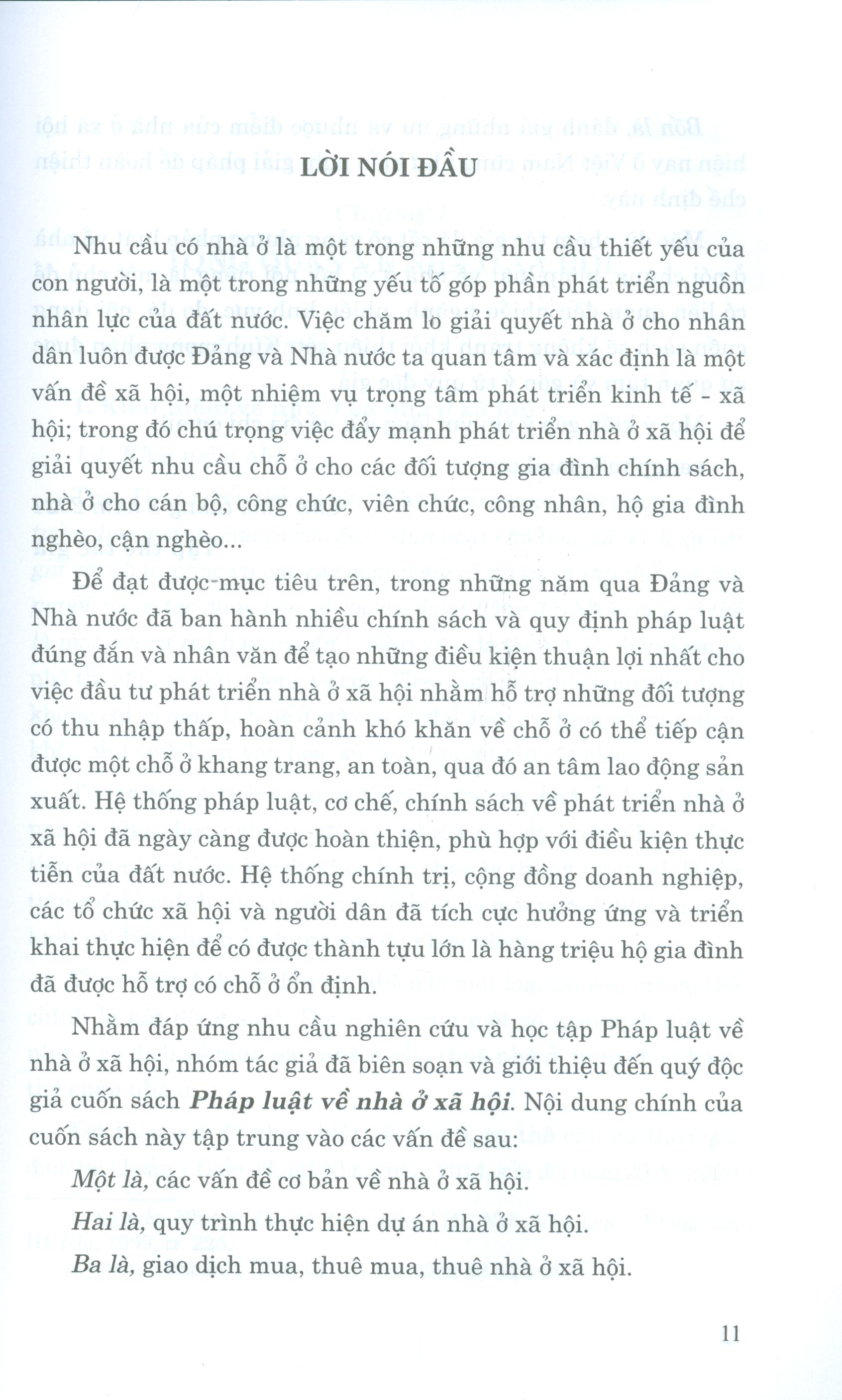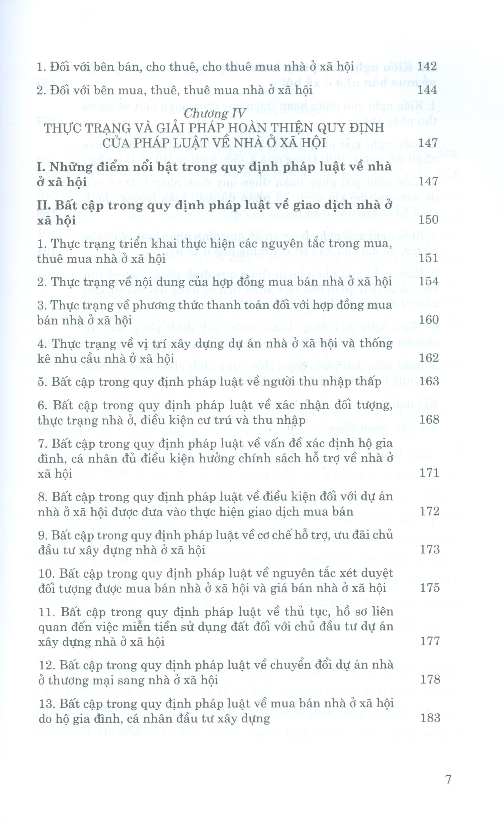 Mua tại TiktokSách đề cập một cách có hệ thống thủ tục pháp lý thực hiện dự án nhà ở xã hội, giao dịch nhà ở xã hội và những bất cập trong quy định pháp luật về giao dịch nhà ở xã hội, từ đó đưa ra các giải pháp hoàn thiện quy định của pháp luật về nhà ở xã hội. Cuốn sách giúp các chủ đầu tư hiểu và áp dụng đúng các chính sách, tiêu chuẩn; nắm bắt và vận dụng kịp thời các cơ hội; hạn chế tối đa những rủi ro, thách thức trong đầu tư xây dựng dự án nhà ở xã hội ở thời điểm hiện tại và trong tương lai. Nội dung sách gồm 4 chương: