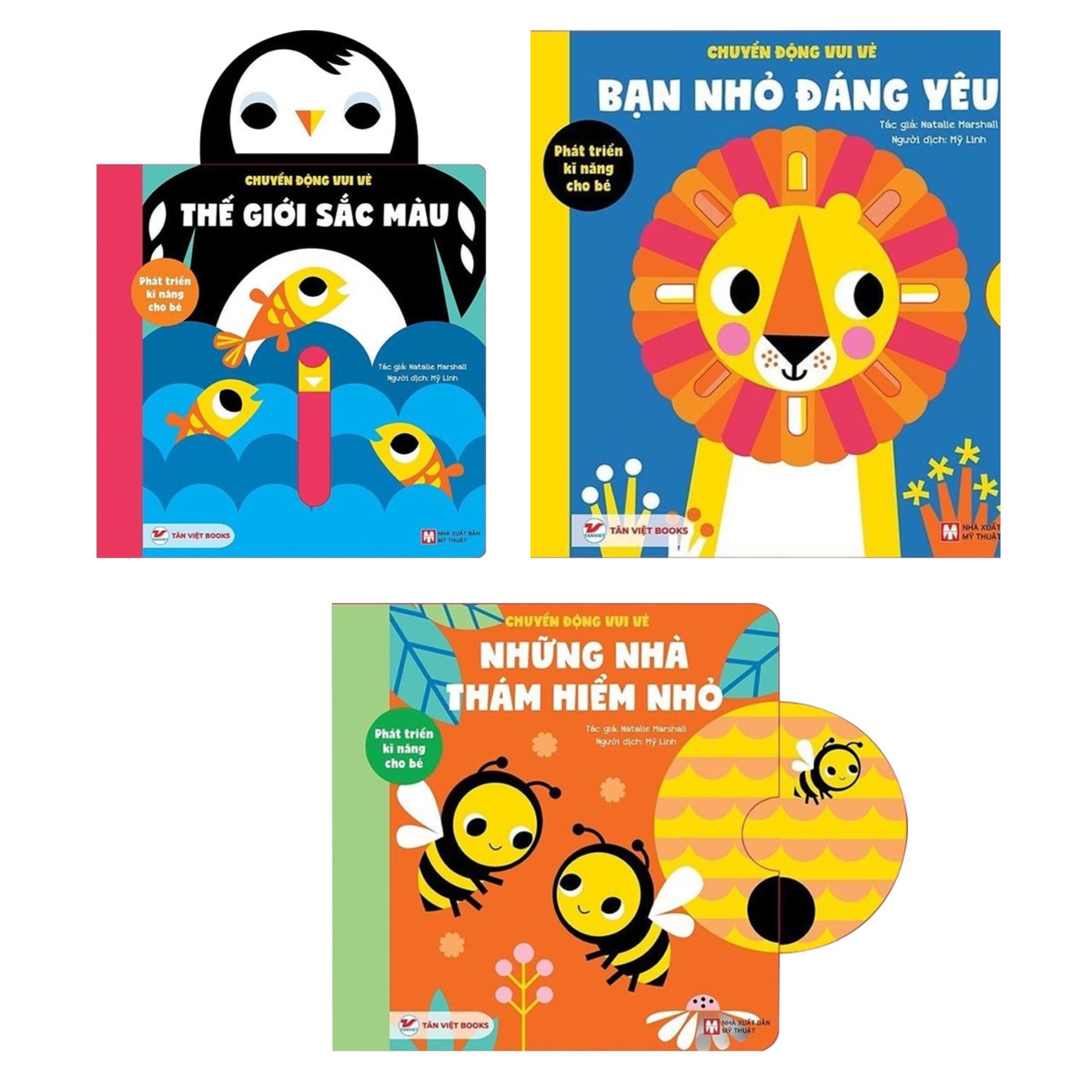 - Phát triển kĩ năng cho bé : Chuyển động vui vẻ - Những nhà thám hiểm nhỏ Những chuyển động vui nhộn và đơn giản trên từng trang sách, kèm theo một chiếc gương bóng loáng hứa hẹn sẽ mang đến những giây phút vui vẻ cho bé cũng như giúp các bé phát triển khả năng vận động tay chân và phối hợp các giác quan. Bộ sách “Chuyển động vui vẻ” có những hình vẽ rực rỡ, sinh động và câu chuyện đơn giản cho bé tập làm quen với sách và bồi đắp tình yêu đọc sách từ những năm tháng đầu đời. Chắc chắn các bé sẽ bị thu hút và muốn chơi đi chơi lại cùng bộ sách vui nhộn này!