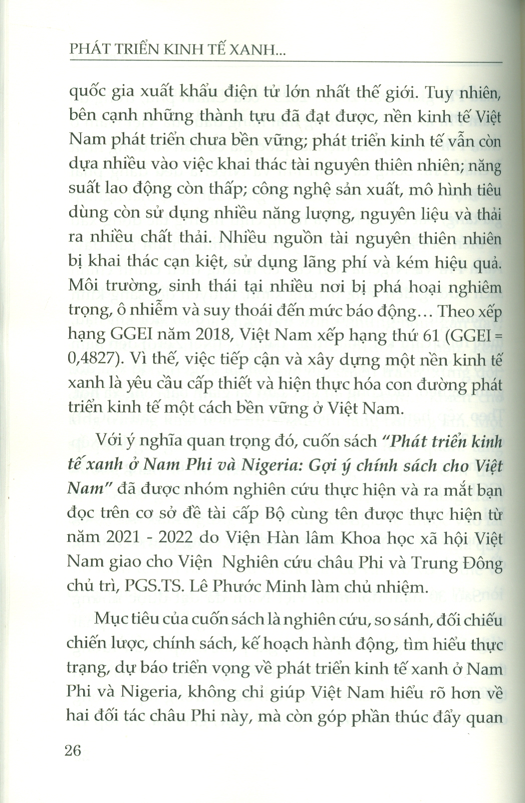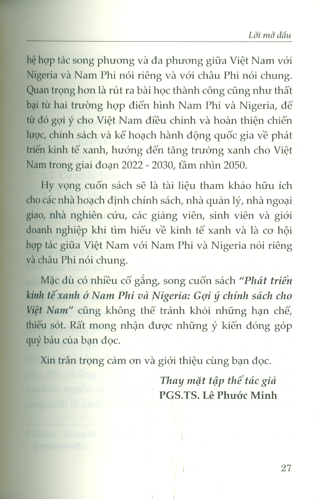 ✨Phát Triển Kinh Tế Xanh Ở Nam Phi Và Nigeria: Gợi Ý Chính Sách Cho Việt Nam (Sách chuyên khảo) - PGS. TS. Lê Phước Minh chủ biên