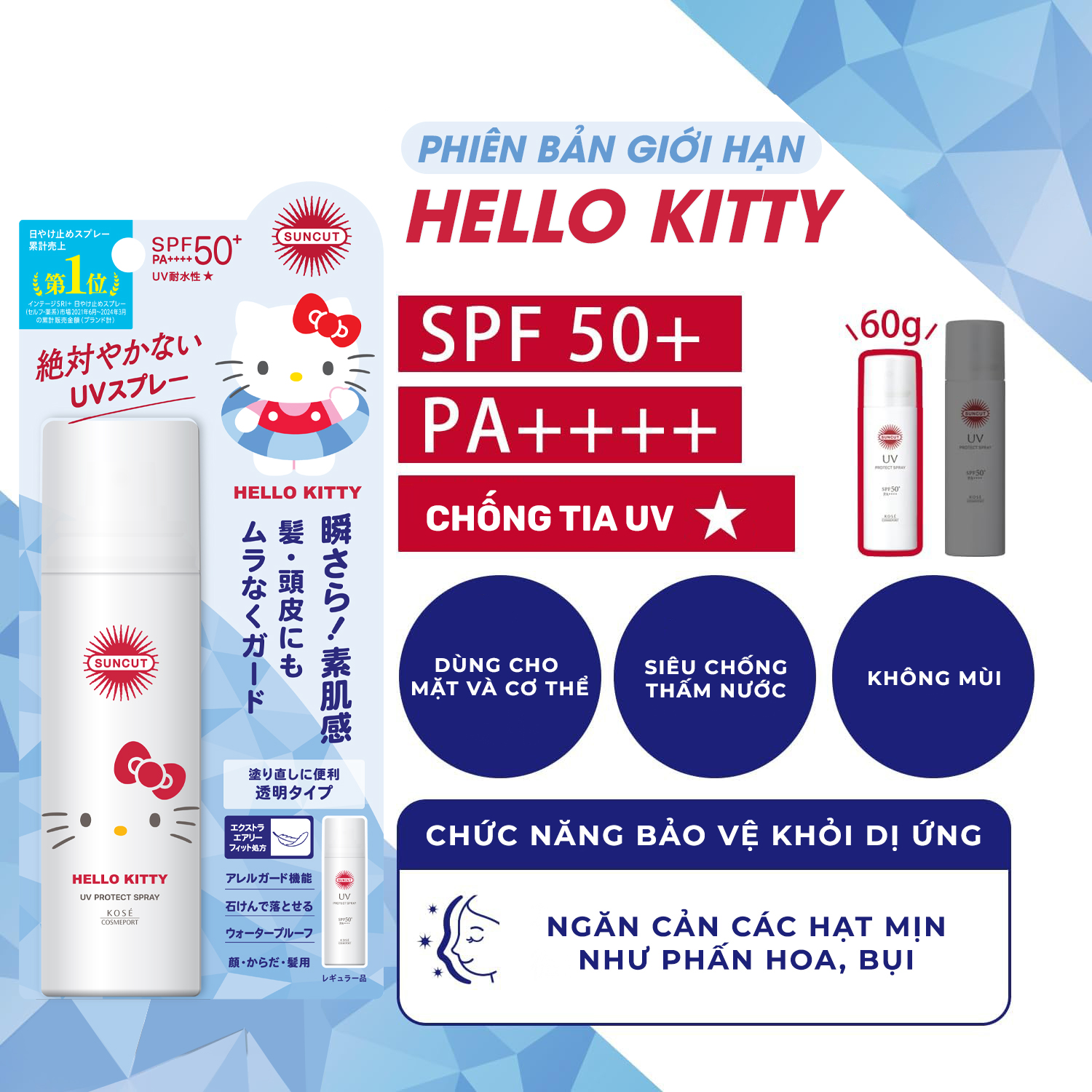 ✨Phiên Bản Giới Hạn Chống Nắng Dạng Xịt Kose Suncut UV Protect Spray SPF50+ PA++++ (Chai 60 G)
