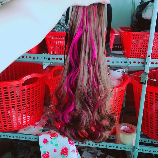Tóc giả nữ xoăn dài, kẹp lọn tóc giả highlight xoăn cao cấp TG17