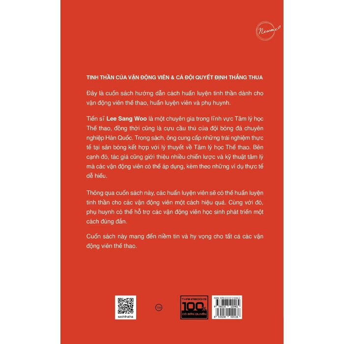 Từ kinh nghiệm của một cầu thủ bóng đá chuyên nghiệp tại K League đến vị trí Tiến sĩ Tâm lý học Thể thao, tác giả Lee Sang Woo đã đúc kết những nguyên tắc vàng để xây dựng tinh thần thép và đạt được phong độ đỉnh cao. Cuốn sách không chỉ dành riêng cho các vận động viên, huấn luyện viên, hay những người làm việc trong lĩnh vực thể thao, mà còn là cẩm nang hữu ích cho bất cứ ai mong muốn quản lý tinh thần hiệu quả và chinh phục mọi mục tiêu trong cuộc sống.