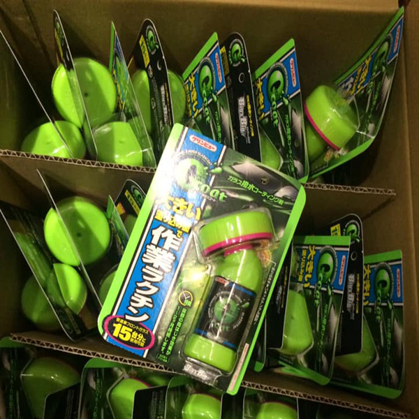 Phủ kính nano chống bám nước gương kính ô tô Nhật Bản Công dụng sản phẩm Phủ kính nano chống bám nước gương kính ô tô   Chống bám nước kính ô tô, kính chắn gió, cửa sổ, gương ô tô. Nước trên kính chắn gió sẽ trôi hết khi xe đạt tốc độ >38Km/h Ngăn chặn sự bám dính của vết dầu, côn trùng, phân chim, , cũng như tuyết và băng giá. Giảm trầy xước do va chạm, xác côn trùng, đất đá Chống bám nước, bụi bẩn Chống lóa đèn và tia UV Dễ dàng vệ sinh sạch kính xe Giảm ma sát và bào mòn từ cần gạt nước, bụi bẩn hoặc các hóa chất, dụng cụ rửa xe Không gây rít kính khi sử dụng cần gạt Lái xe an toàn hơn dưới trời mưa   Cách sử dụng:   Đầu tiên, bạn hãy rửa hoặc lau chùi bụi bẩn bằng nước và lau sạch nước còn lại trên kính xe trước khi sử dụng Chỉ cần mở nắp chai và thoa đều (phủ nano kính) lên toàn bộ kính cần sử dụng Để khô từ 3 – 5 phút sau đó lấy khăn khô lau lại bề mặt là xong Dung dịch phủ nano kính có tác dụng chống bám ngay tức khắc và duy trì hiệu quả khoảng 1 tháng (tùy điều kiện thời tiết) Đặc biệt với hiệu ứng lá sen, nước trên kính xe sẽ tự động trôi ra ngoài khi xe đạt vận tốc 38km/h Nếu chỉ dùng cho kính lái có thể sử dụng được 15/20 lần Nếu dùng cho cả xe có thể sử dụng 6-8 lần   Thông tin sản phẩm Phủ kính nano chống bám nước gương kính ô tô   Dung tích: 110ml Dạng: Sáp lỏng Sản xuất tại: Nhật Bản Mã sản phẩm: 20883     Sau khi sử dụng sản phẩm, nước mưa sẽ đọng thành giọt tròn, to và tự động hất ngược khỏi mặt kính lái khi đi với vận tốc trên 38km/h