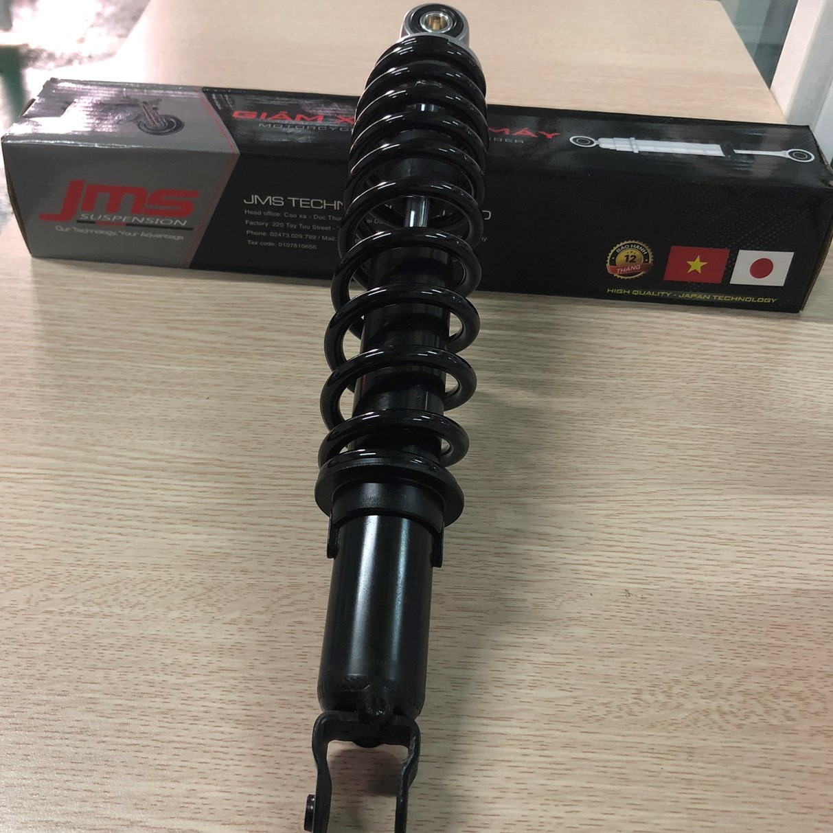 CHIỀU DÀI PHUỘC NHÚN: 330 mm Xuất xứ: Công ty TNHH công nghệ JMS Hàng mới 100% Dây chuyển sản xuất công nghệ Việt - Nhật Các tính năng nổi trội của Phuộc( giảm xóc)