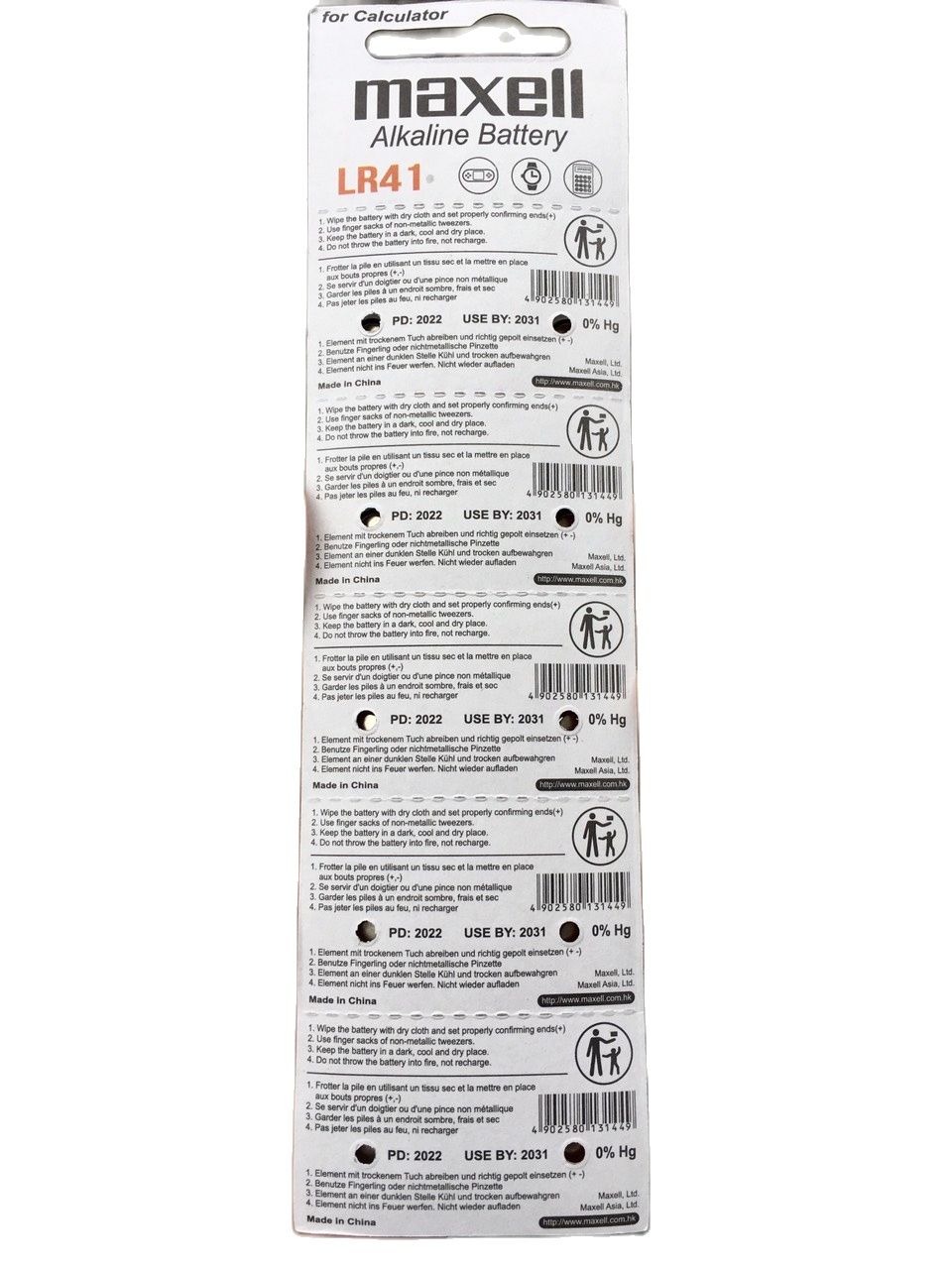 Vỉ 10 Viên Pin Cúc Áo Maxell LR41 / AG3 / L736F Nhật Bản 1,5VPin Cúc Áo LR41 / AG3 Maxell 1,5V sử dụng thay pin móc khóa điện tử, đồ chơi điện tử, cân điện tử, thiết bị y tế, dụng cụ đo đường huyết, ...