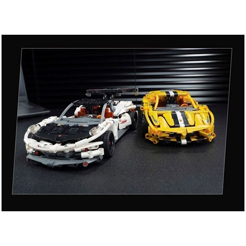 QMAN - 91007 Bộ đồ chơi xếp hình mô hình xe Ô tô màu vàng đi bão, xe đua tốc độ (KT 26.7x13.8x8.7cm) Chất liệu: Nhựa ABS - Độ tuổi: 6+ -