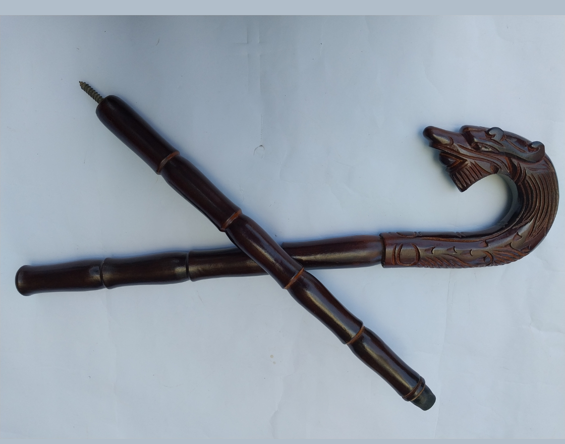 Gậy gỗ xà cừ đầu rồng Kiểu thân đốt trúc- dành cho người già Nguyên liệu: gỗ xà cừ,keo Kích thước: dài 89- 91cm x đường kính 3,5cm Gậy Batoong Đầu Rồng Gỗ Keo- Món