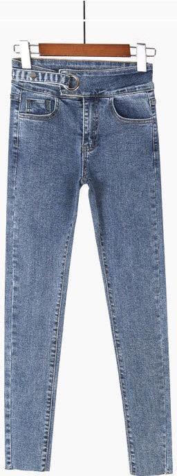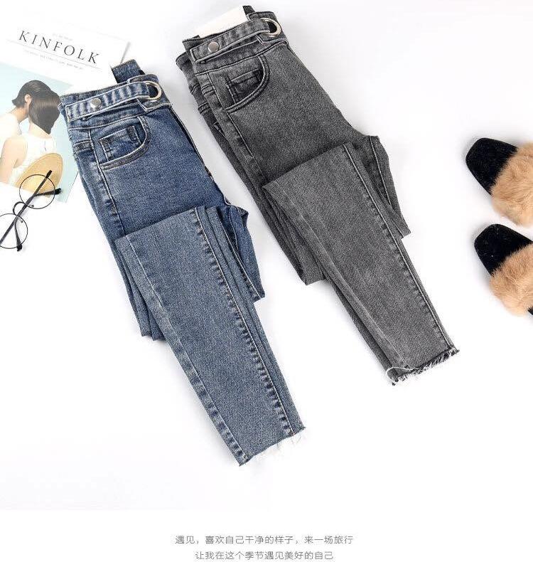 ✨Quần jeans màu xám khói nữ co giãn bó sát chín tất bé gái