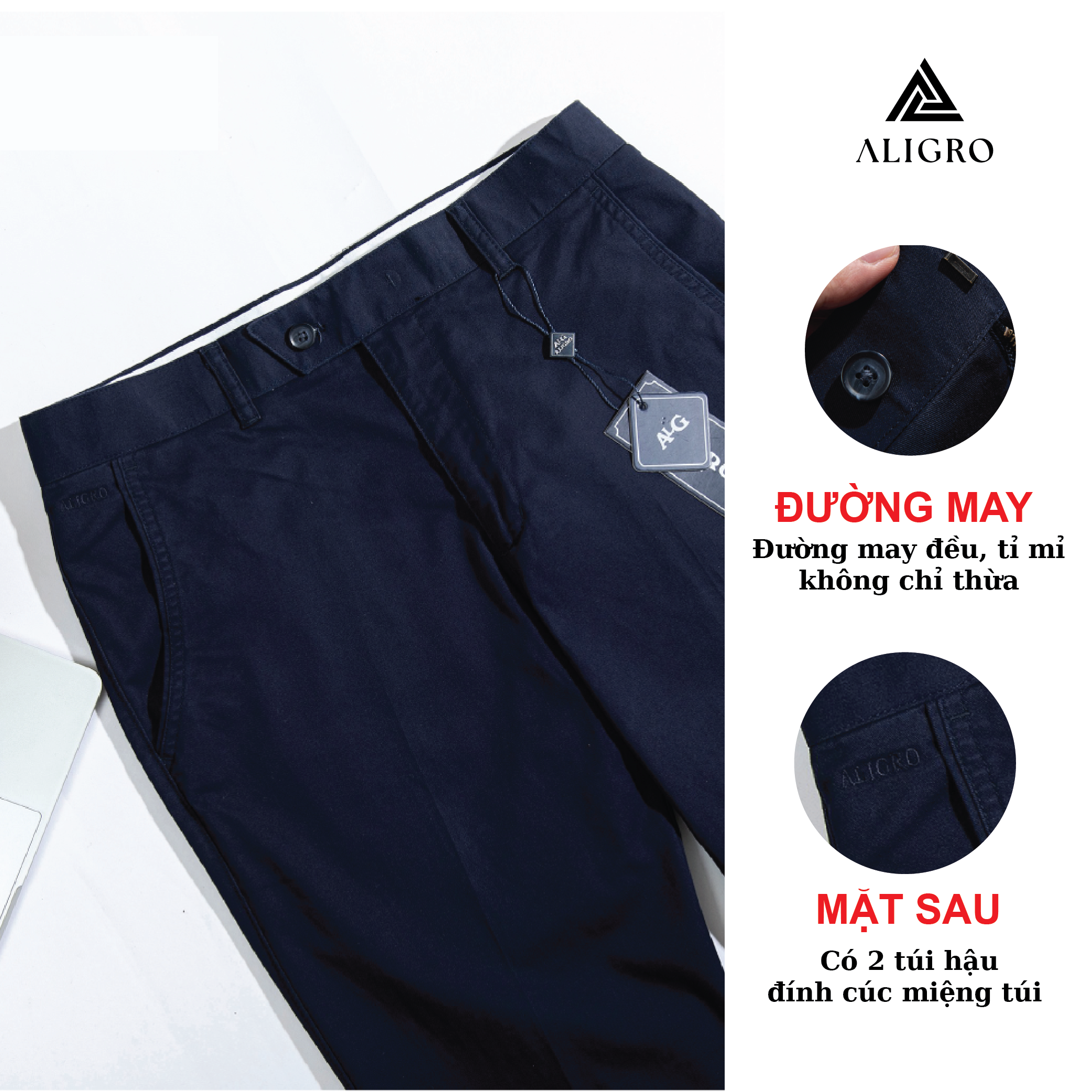 Mua tại TiktokGIỚI THIỆU THƯƠNG HIỆU Mang trong mình tầm nhìn chiến lược trở thành thương hiệu “Thời trang nam được yêu thích nhất Việt Nam” nên Aligro luôn chú trọng nghiên cứu phát triển mẫu mã, phom dáng phù hợp với vóc dáng hình thể đàn ông Việt. Sản phẩm của chúng tôi mang tới hình ảnh trẻ trung, năng động, hiện đại mà không kém phần lịch sự, sang trọng - cam kết mang lại giá trị đích thực và một cuộc sống thịnh vượng hơn cho phái mạnh Việt. CHI TIẾT THIẾT KẾ QUẦN KAKI NAM ALIGRO