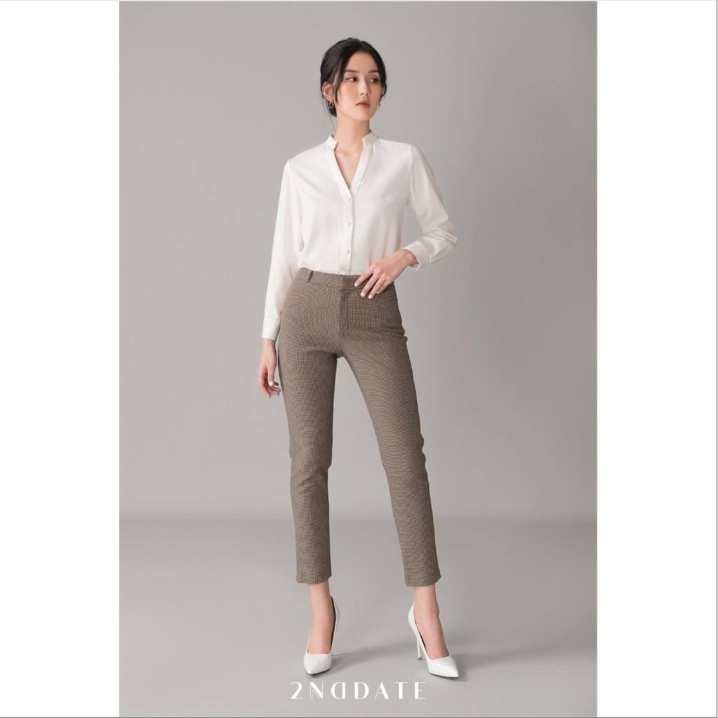 ✨Quần Slim-fit nữ kẻ Houndstooth 2NDDATE TR009H