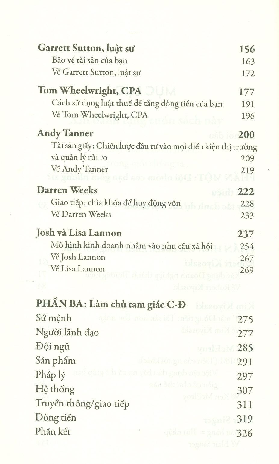 Trong “Quan trọng hơn tiền bạc”, Robert hợp tác với những cố vấn đáng tin cậy nhất của mình, những người không chỉ đóng góp thông tin về điểm mạnh và tài năng mà họ mang lại cho nhóm, mà còn chia sẻ những bài học kinh nghiệm cá nhân chân thành và sâu sắc từ vai trò chủ sở hữu hoặc CEO doanh nghiệp và nhà đầu tư. Độc giả sẽ có cơ hội gặp tất cả Cố vấn Rich Dad của Robert để hiểu tại sao họ là một trong những tài sản quý giá nhất của ông.