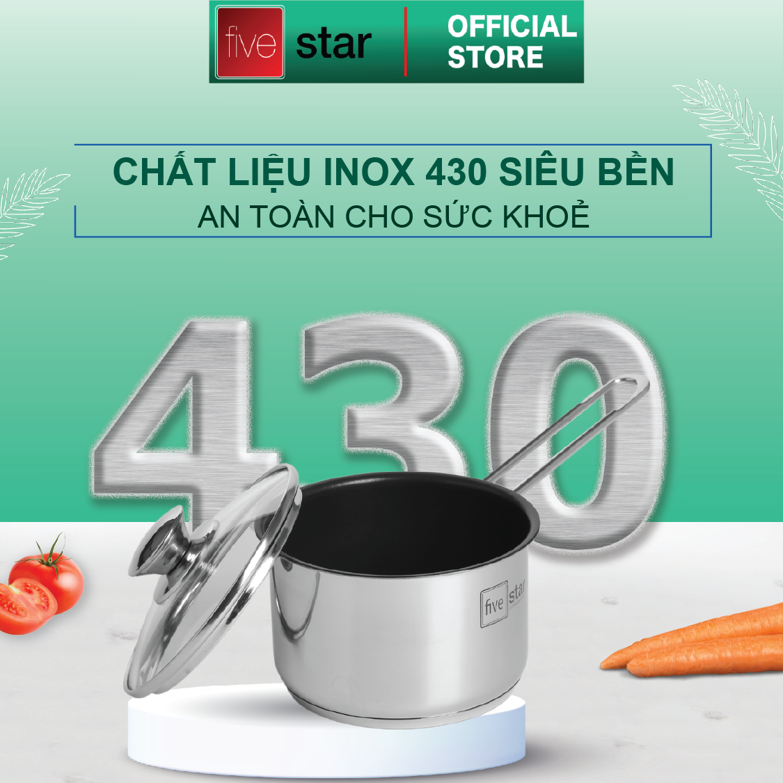 Nồi quánh bột chống dính Inox 3 đáy Fivestar 12cm/ 14cm nắp kính dùng được bếp từ Zalo 0816 505 655