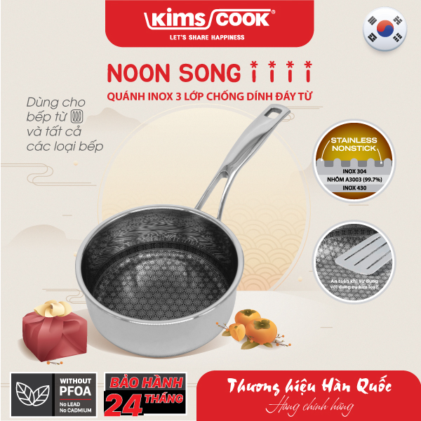 ✨Quánh KIMS COOK Noon Song inox 3 lớp đáy từ nắp kính chống dính 2 mặt