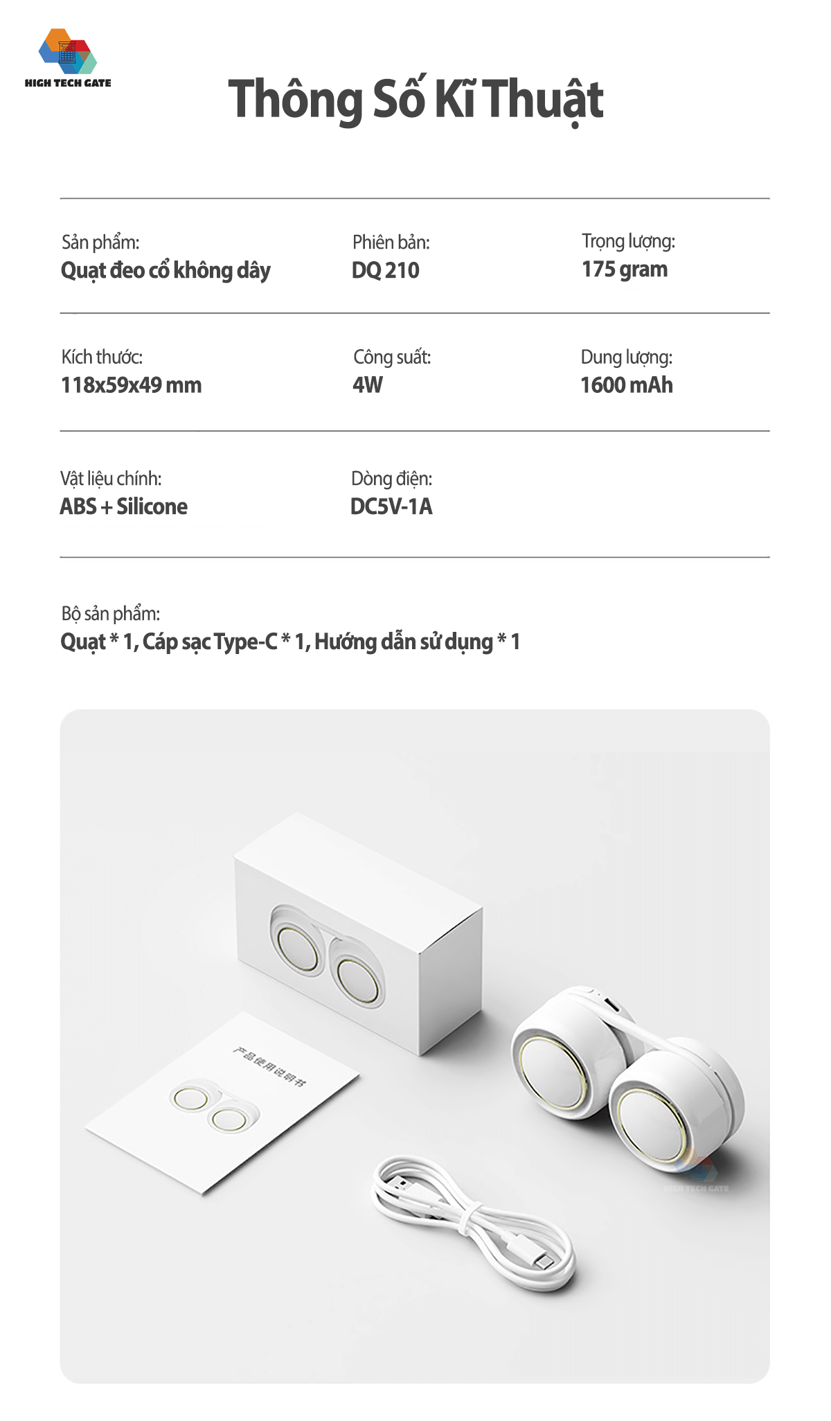 Quạt đeo cổ gấp gọn DQ-210 1 phiên bản tuyệt vời với dạng mini bỏ túi, không dây cầm tay di động,thiết kế không vướng tóc, 3 cấp độ gió! Thiết kế không cánh thông minh tiện lợi hơn! SỰ THUẬN TIỆN CỦA MỘT PHIÊN BẢN MỚI - SẼ GIÚP BẠN CÓ MỘT TRẢI NGHIỆM TUYỆT VỜI HƠN Thiết bị hữu ích giúp người dùng giải tỏa nóng bức mọi nơi, bất cứ đâu như một chiếc máy điều hòa nhỏ mini quanh cổ. Vừa dùng vừa mát - vừa có thể di chuyển bất cứ đâu, mà không cần đến cầm nắm trên đôi tay. Sở hữu hàng loạt thiết kế nổi trội mà bạn đáng phải cân nhắc. Quạt đeo cổ gấp gọn DQ-210 là một phiên bản siêu nhỏ gọn, cải tiến nâng cấp rất tiện lợi cho cuộc sống hiện đại. Thoải mái hơn khi đeo lâu và đặc biệt là không gây khó chịu Nâng cấp nổi trội của phiên bản DQ210 là một chiếc quạt không cánh, thiết kế thông minh khiến cho người dùng không bị vướng tóc như những chiếc quạt đeo cổ thông thường. Quạt đeo cổ gấp gọn DQ-210 đảm bảo sẽ làm bạn hài lòng với chức năng này! Ngoài tính nhỏ gọn, thì nó còn trang bị một thời lượng pin hợp lý đủ dài cho người dùng thoải mái sử dụng trong ngày nắng nóng, những lúc khó chịu. Quạt đeo cổ gấp gọn DQ-210 tích hợp dung lượng pin 1600mAH, và chỉ với 2h sạc đầy. Thiết kế không dây, gấp gọn mang đi là một thiết kế thuận tiện cho người dùng hiện nay, bởi bạn có thể mang theo nó mọi nơi mà không rườm rà, rất phù hợp với cuộc sống hiện đại đơn giản mà lại tiện ích. Quạt đeo cổ gấp gọn DQ-210 trang bị cho mình 3 cấp độ gió, giúp người dùng có thể lựa chọn cấp độ phù hợp vào những hoàn cảnh khác nhau, dù là bạn đang nghỉ ngơi giữa trưa, hay làm việc mệt nhọc, và tất nhiên là thể thao vận động.