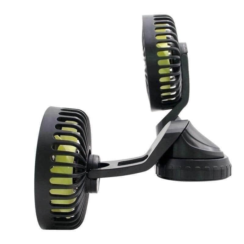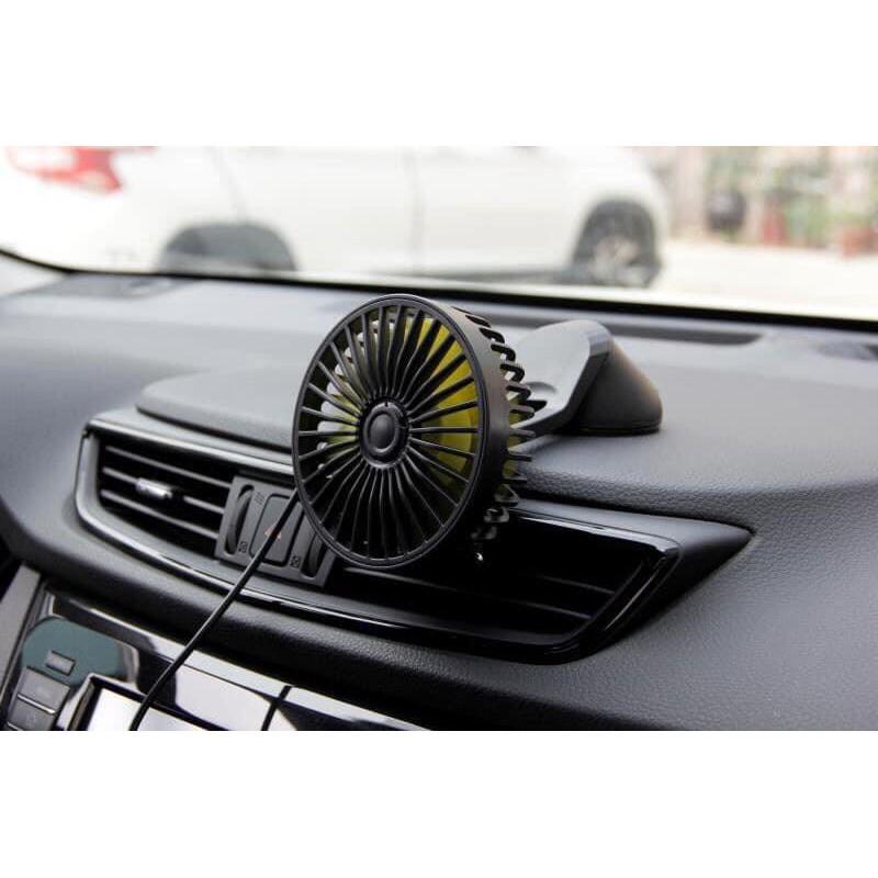 Quạt Đôi Trên Ô Tô 12V/24V ,Quạt Đôi Mini Cho Xe Hơi Xoay 360 Độ,Đầu Cắm Sạc USB Tiện Lợi - Kiên BRL