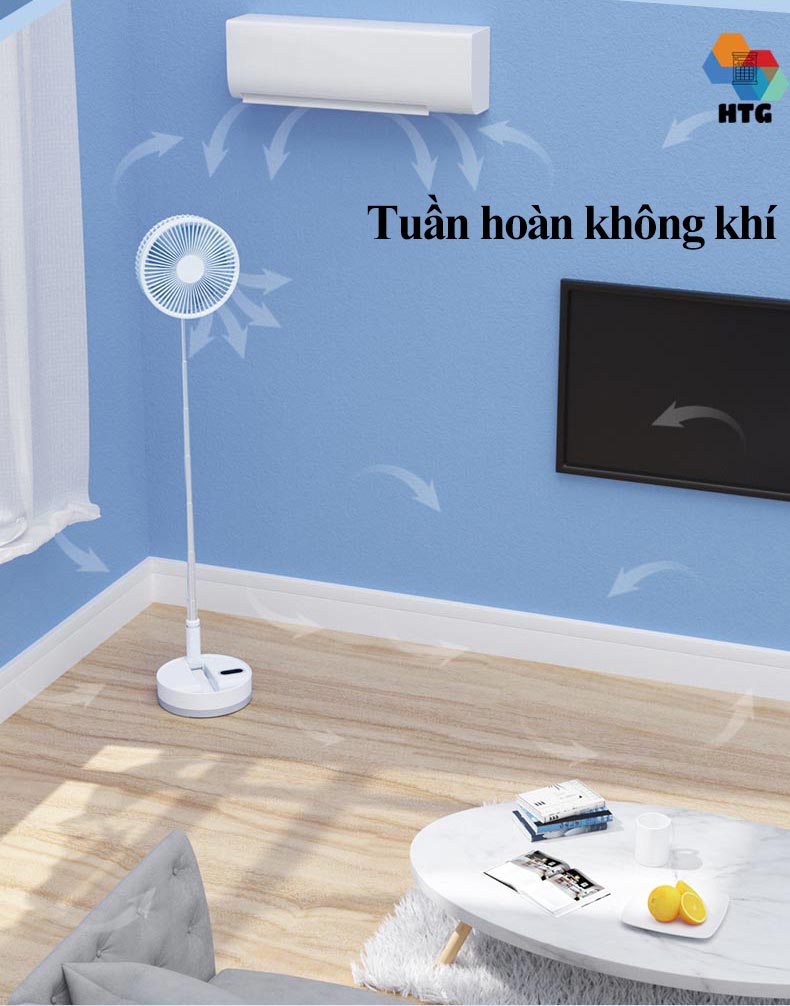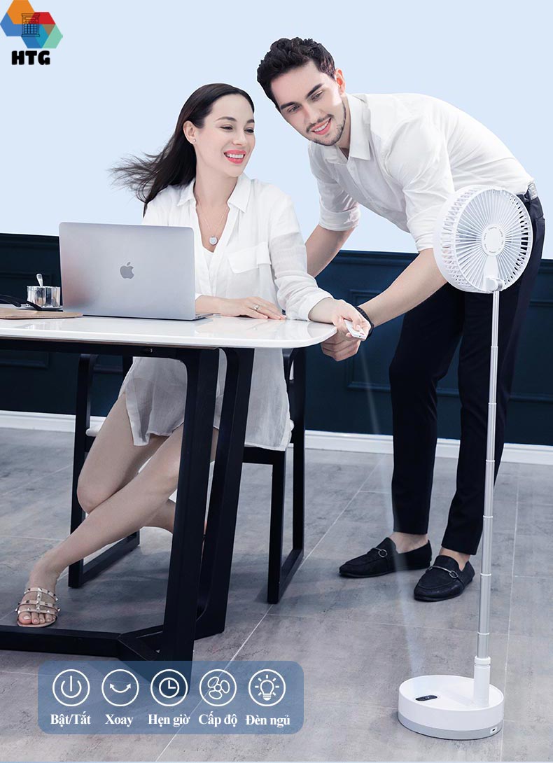 Quạt điện không dây gấp gọn gia đình đa năng,siêu mát, có hẹn giờ, 8 cấp độ gió, có remote HTGP30