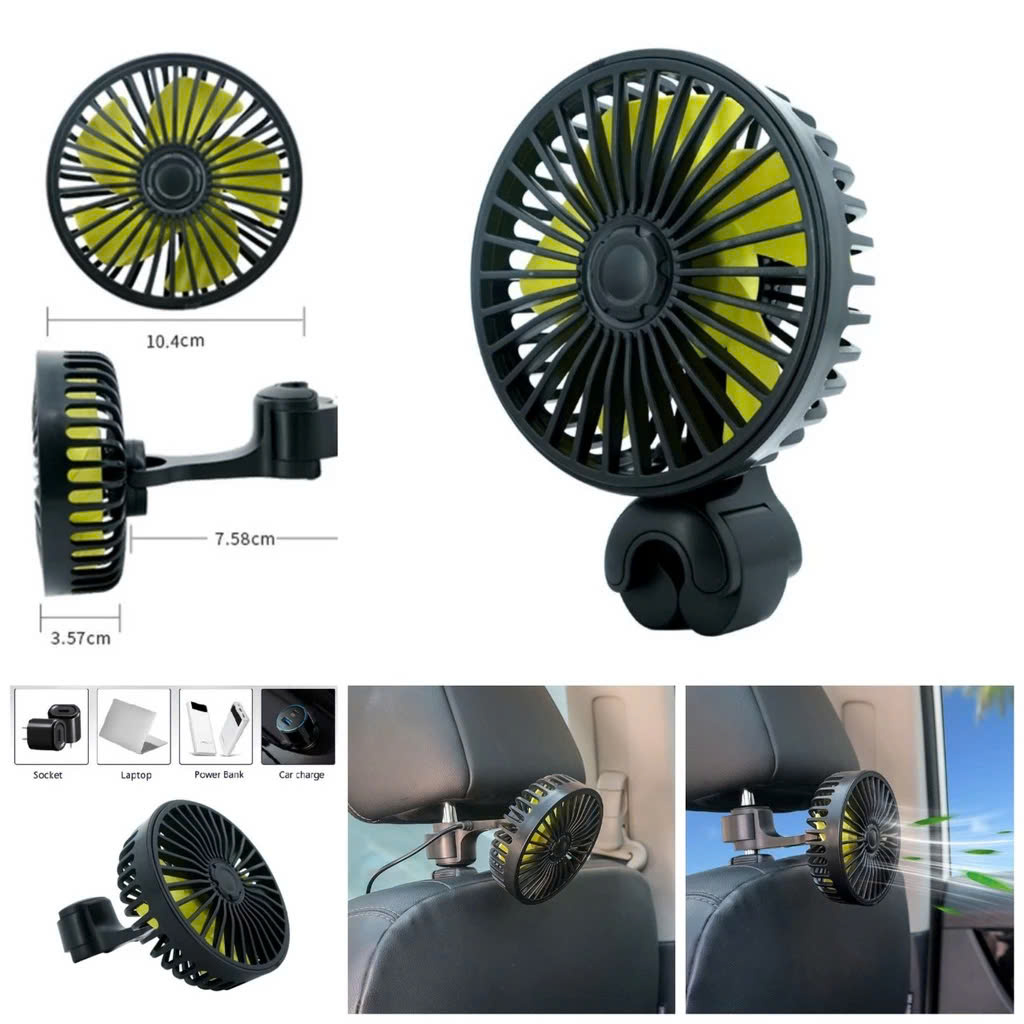 Quạt Ô Tô 3 Tốc Độ Ghế Ô Tô Trở Lại Quạt Làm Mát Sạc USB Quạt Hai Đầu Xoay 360 Độ Cổ Làm Mát
