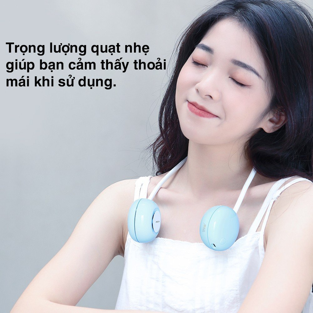 - Quạt mini đeo cổ sạc tích điện không cánh Rockspace rất tiện lợi: không có cánh nên không sợ tóc cuốn vào, siêu nhẹ, công suất khỏe, pin trâu tốt, silicon đeo cổ nên không bị dị ứng với da, không phải cầm tay.