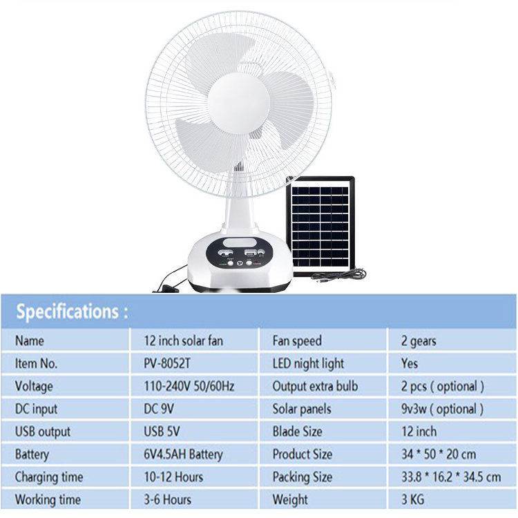 Quạt sạc tích điện năng lượng mặt trời đa năng Recharaeable Fan, Không tốn tiền điện, Mất điện vẫn sạc, 2 Bóng đèn LED, 1 Tấm pin năng lượng mặt trời, Cổng sạc USB cho điện thoại di động, TN Bluetooth Siêu Bass Có Mic Đàm Thoại trò truyện trên Zoom